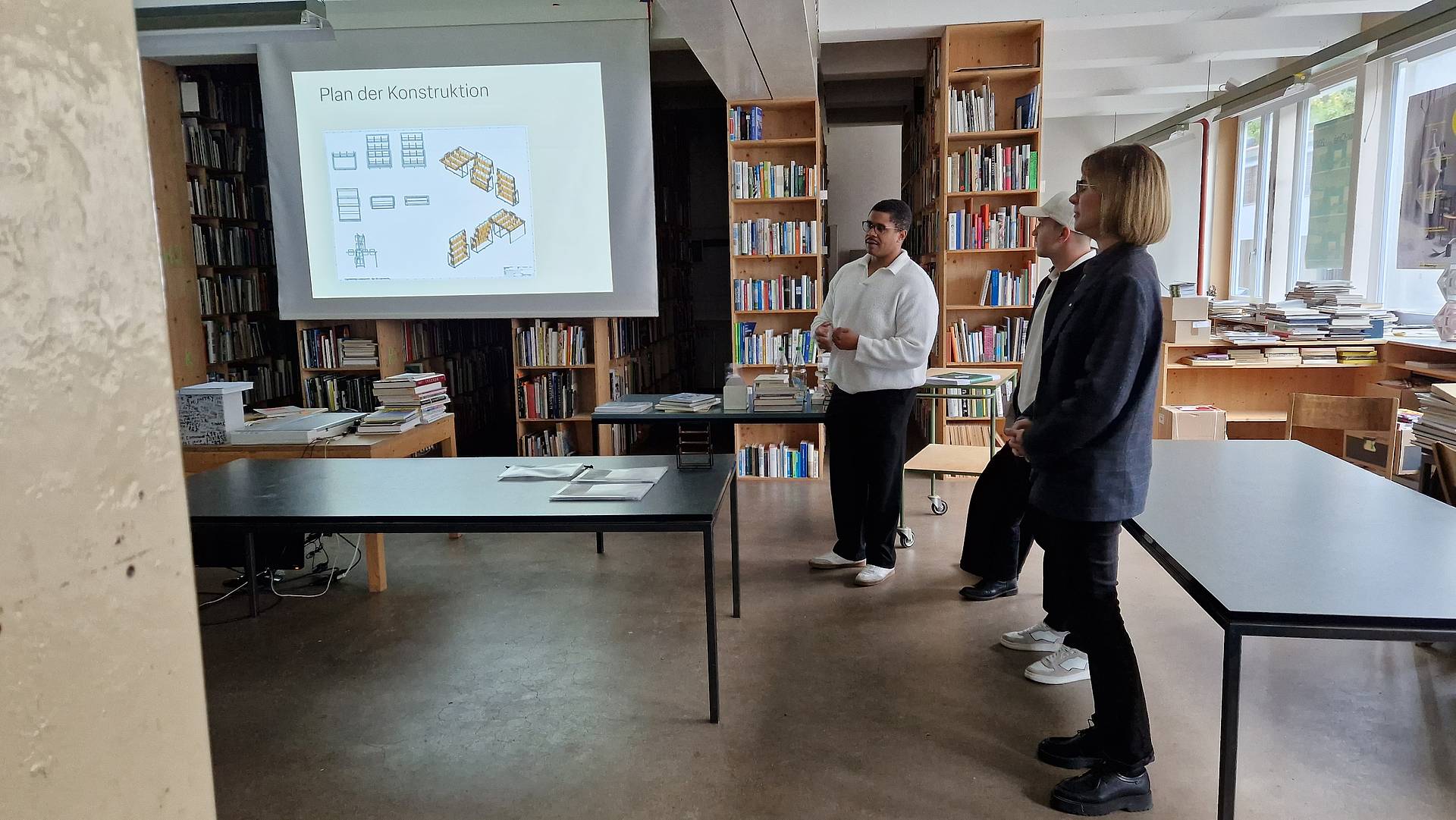 Die vorgestellten Ideen zeigen, was entsteht, wenn man eine Frage aus verschiedenen Blickwinkeln betrachtet. Eine Gruppe spricht zum Beispiel bewusst vom Grafik-Archiv, weil Schnipsel oft mit Abfall in Verbindung gebracht werden. Sie schlägt transparente Plexiglas-Schuber oder Boxen vor, die wie Bücher ins Regal gestellt und nach Kategorien sortiert werden. Ein anderes Team macht eine Zeitschriftensäule beliebt, inspiriert vom Kiosk. Statt ins Regal integriert zu werden, bekommt das Schnipsel-Archiv einen eigenen Platz im Raum.