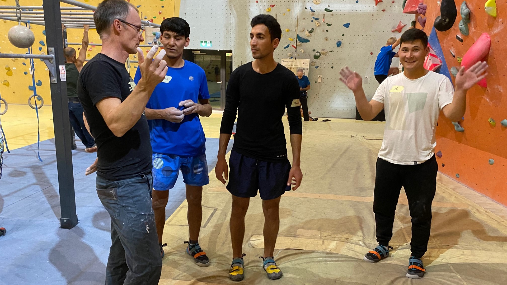 Karin Steinbach Tarnutzer hat die Boulder-Gruppe für Geflüchtete gegründet. Jeden Mittwoch trifft man sich von 16 bis 18 Uhr in der Kletterhalle in Winkeln. Eintritt, Klettergurt, Kletterfinken und die Expertisen von Trainer*innen sind dann jeweils kostenlos.