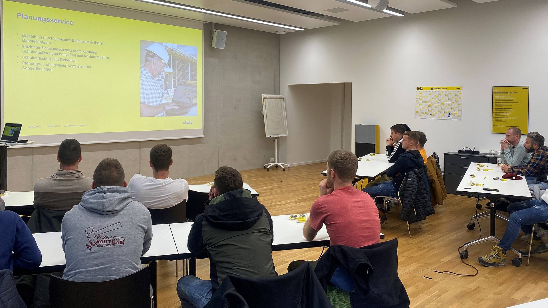 Gleich an zwei Vormittagen lud die Doka Schweiz AG je eine Klasse der Baupolier*in FA zu sich nach Niederhasli ZH ein. Die Ziele der Betriebsbesichtigung: Vom Wissen der Schalungshersteller*innen direkt profitieren, die Schalungen vor Ort anschauen und die Firma kennenlernen. «Doka ist einer der bekanntesten Schalungshersteller weltweit. Jeder und jede Polierer*in muss diesen Hersteller kennen und seine Produkte anwenden können», sagt Lehrer Marcel Rechsteiner.
