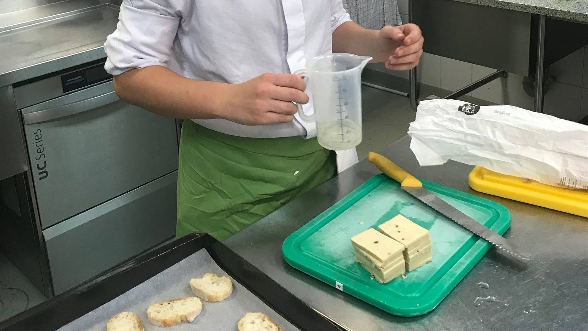 Gleich 17 Schüler*innen nahmen teil. Der Kurs fand verteilt auf zwei Tage in den Küchen der Gastro St.Gallen statt. Referent und Kursleiter war Raphael Lüthi, seines Zeichens Food-Entwickler für die vegetarische und vegane Restaurantkette Tibits. Er präsentierte den Teilnehmenden sogleich neue Produkte wie Käse aus Cashew-Milch oder Chips aus Biertrester. Nach einem kurzen Theorieblock über die vegane Küche («Nachhaltigkeit steht über Gewinn», «Lieferanten sind Partner» und «Röstbitter entwickeln wie beim Fleisch») wurden eigene Gerichte gekocht und anschliessend degustiert. Die Köche*innen EFZ bereiteten unter anderem vegane Käsekuchen, Schokoladencrème und Aprikosenwähen zu. «Es war ein lehrreicher und rundum gelungener Freikurs – dank dem grossen Fachwissen von Kursleiter Raphael Lüthi», lobt Roland Fuchs.
