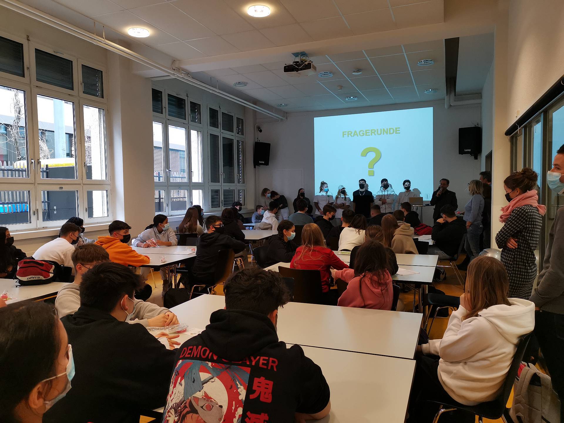 Schlussrunde in der Mensa. Nach den zahlreichen Eindrücken haben die Jugendlichen noch einmal die Möglichkeit, Fragen zu stellen. Eine Schülerin will wissen, was die Lernenden in ihrer Berufswahl inspiriert habe. Einer von ihnen hat einen entscheidenden Tipp als Antwort parat: «Macht etwas, worin ihr gut seid. Etwas, woran ihr Spass habt. Dann fällt euch alles automatisch leichter.»