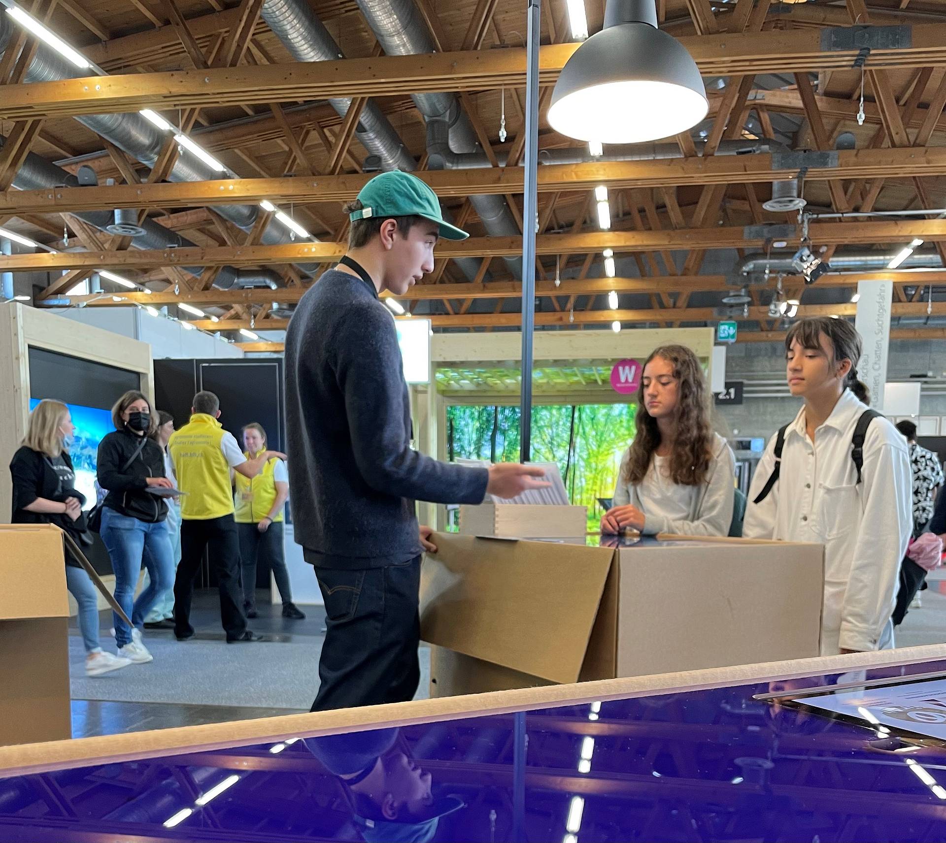 Die Baukaderschule findet man in der Halle 2.0, eingebettet in den Stand des kantonalen Baumeisterverbands. Dass es hier um Bauberufe geht, merkt man schon, wenn man die Halle betritt. Hämmern, bohren, hobeln - nirgends sonst ist es an der OBA so laut. Wer sich für eine der vielfältigen Weiterbildungen im Bereich Baukader interessiert, ist hier genau richtig. Und noch ein Tipp für Besucherinnen und Besucher: An der OBA findet die Regionalausscheidung der Berufsmeisterschaft der Maurer*innen statt.