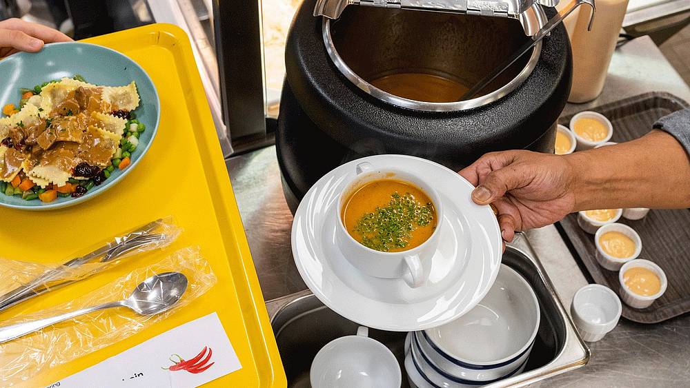 Von Hörnli mit Ghackets bis Thai-Curry, von Gipfeli bis Zimtkuchen: Das Team unseres GBS-Restaurants mampf bietet jede Woche frisch zubereitete Köstlichkeiten an. Jeden Tag gibt es zwei wechselnde Menus, dazu das ständige Tagesangebot wie Salate, Chicken Nuggets oder Pizza. Und zwar nicht nur für Lernende und Mitarbeitende. Das Restaurant ist auch für Auswärtige geöffnet und mit dem Ende der Corona-Massnahmen wieder vollumfänglich zugänglich. Sie wohnen oder arbeiten in der Nähe und möchten bei uns Zmittag essen? Sie sind auf einem Spaziergang von den Drei Weieren zurück und möchten sich bei einem Kaffee aufwärmen? Kommen Sie vorbei!