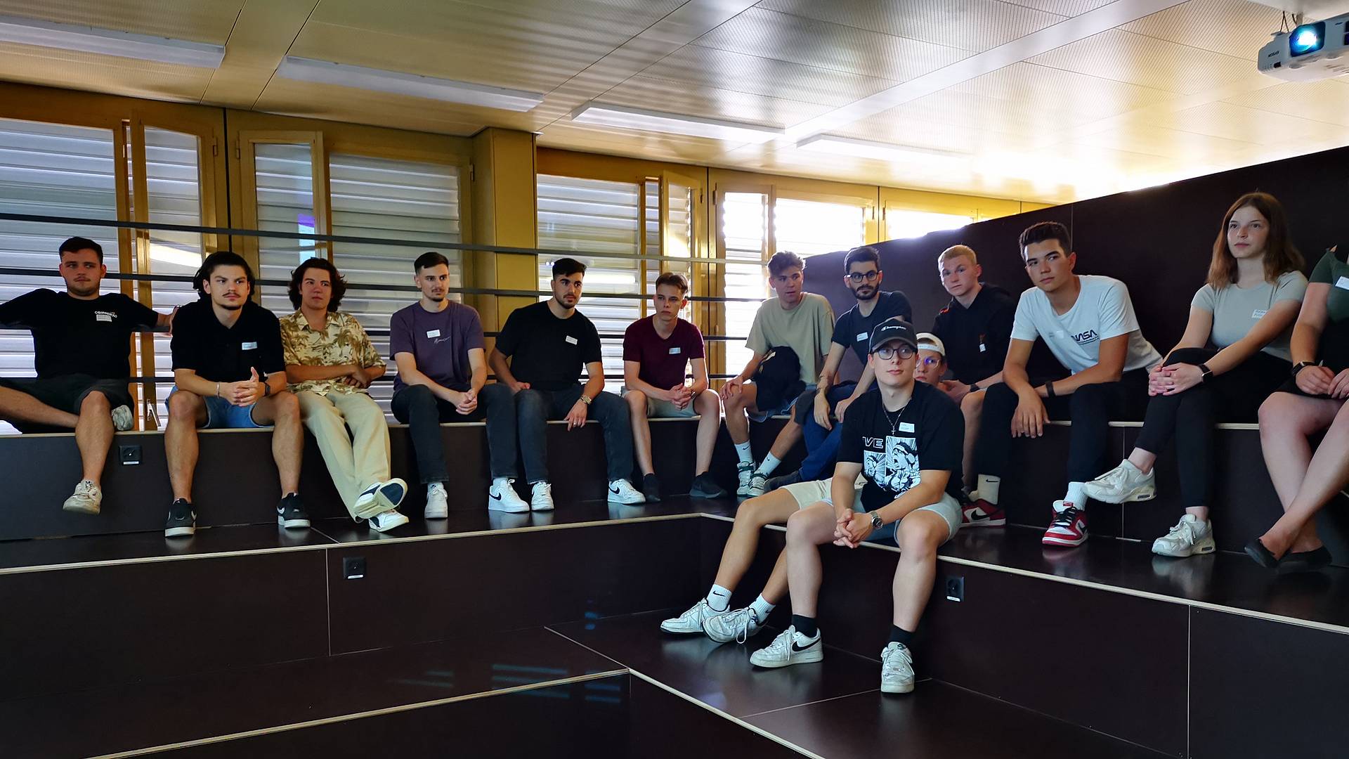 «Boah, dieses Zimmer ist cool!» Diese Aussage stammt tatsächlich von einem Lernenden, der beim Vorbeigehen in den Raum H.414 schaute. Der Stundenplan erlaubt es ihm vorerst noch nicht, in der Arena Platz zu nehmen (siehe Bild unten). Eine Informatiker-Klasse im 4. Ausbildungsjahr erhält dort von Lehrperson Dario Bühlmann gerade eine Einführung. «Die Arena lockert alles auf, macht den Unterricht dynamischer», sagt er.