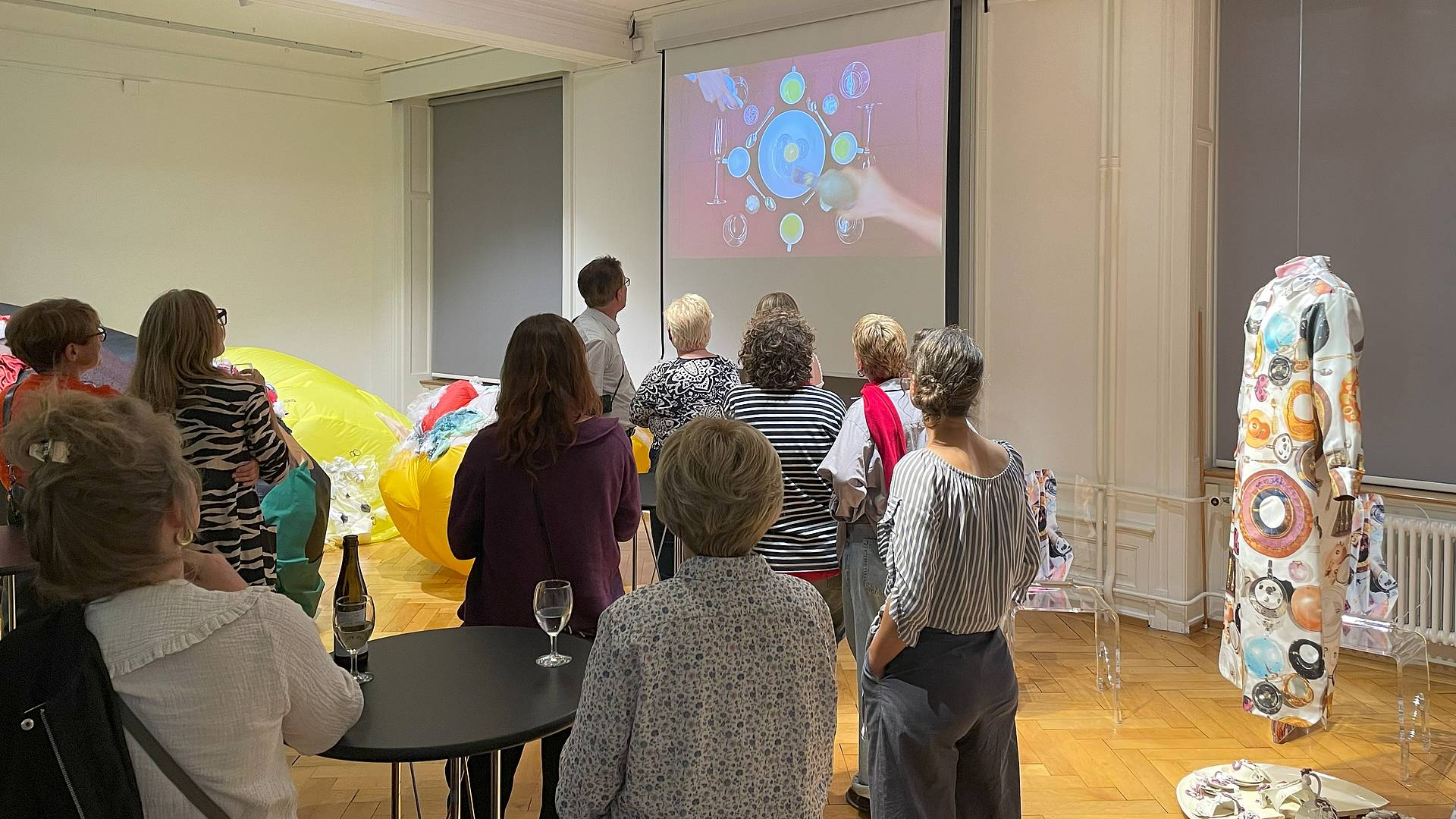 Gedeckt wurden die Tische von verschiedenen Gästen, unter anderem erhielten die Studierenden des Propädeutikum vom Textilmuseum eine Einladung, den zur Verfügung gestellten Raum kreativ zu beleben.