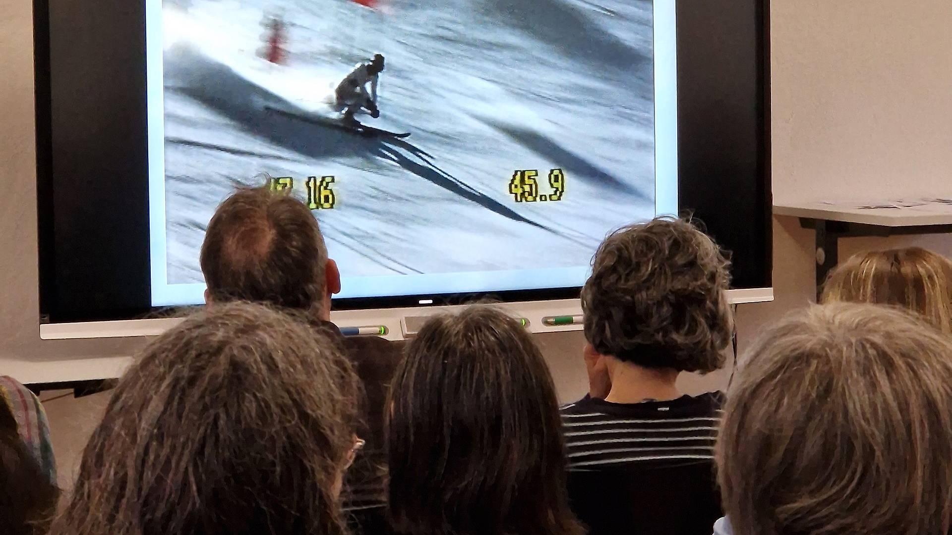 Ihren Input reichert Monika Wicki-Hess mit verschiedenen eigenen Beispielen an. Den Lehrpersonen zeigt sie einen Ausschnitt vom Riesenslalom an der Weltmeisterschaft 1982.