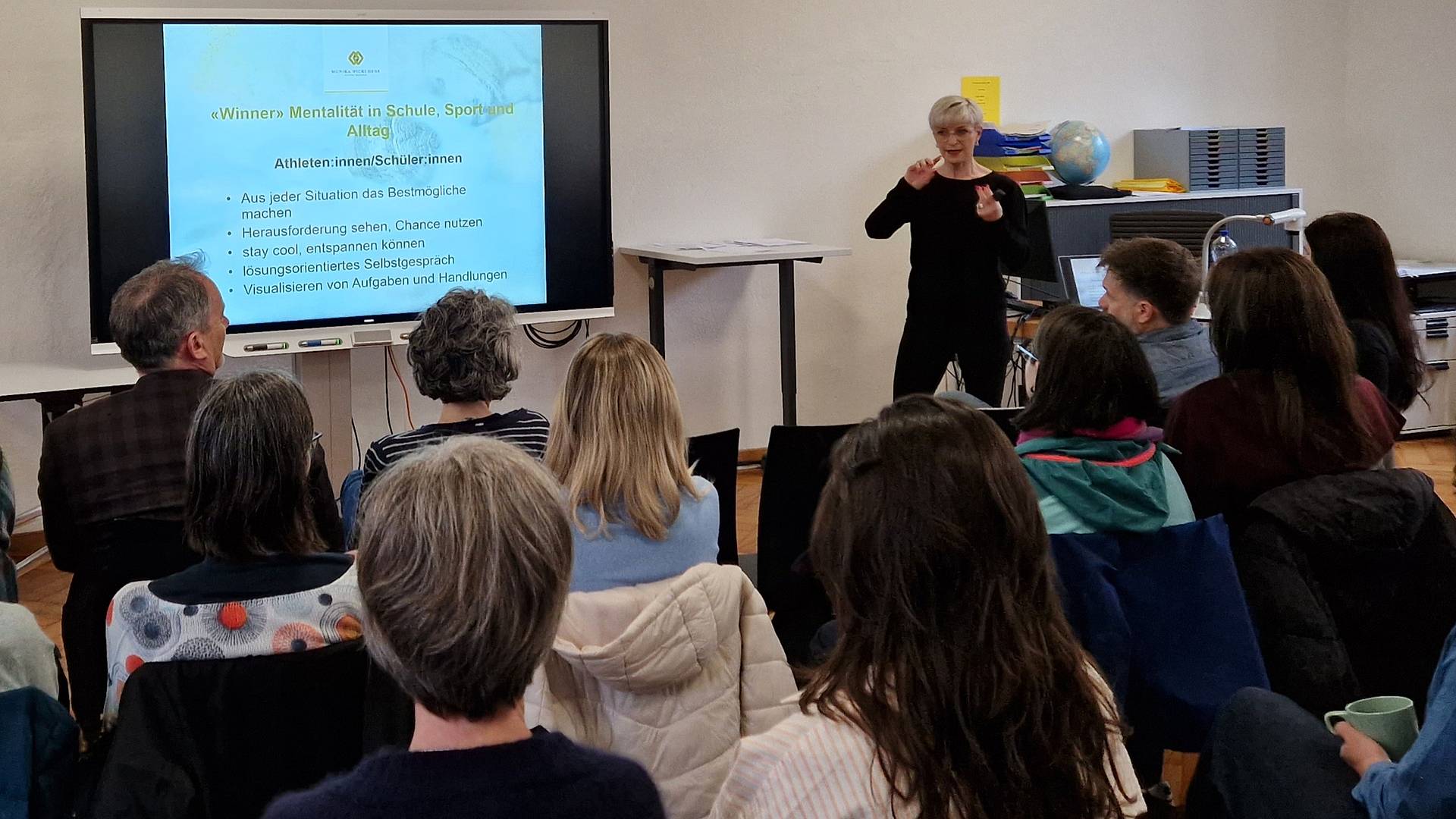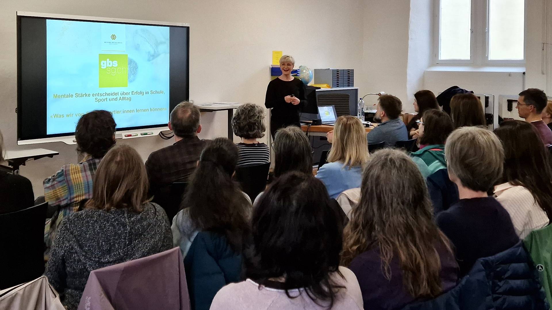 Mentale Stärke entscheidet über Erfolg – im Alltag, im Sport und in der Schule. Auch in den Brückenangeboten des GBS St.Gallen ist die richtige Einstellung ein zentraler Faktor: etwa wenn Lernende eine Lehrstelle suchen oder ihre ersten Sätze auf Deutsch lernen. Am Weiterbildungstag für die Lehrpersonen der Brückenangebote erklärte Mentaltrainerin Monika Wicki-Hess, wie negative Verhaltensmuster durchbrochen und Gedanken gezielt gesteuert werden können.