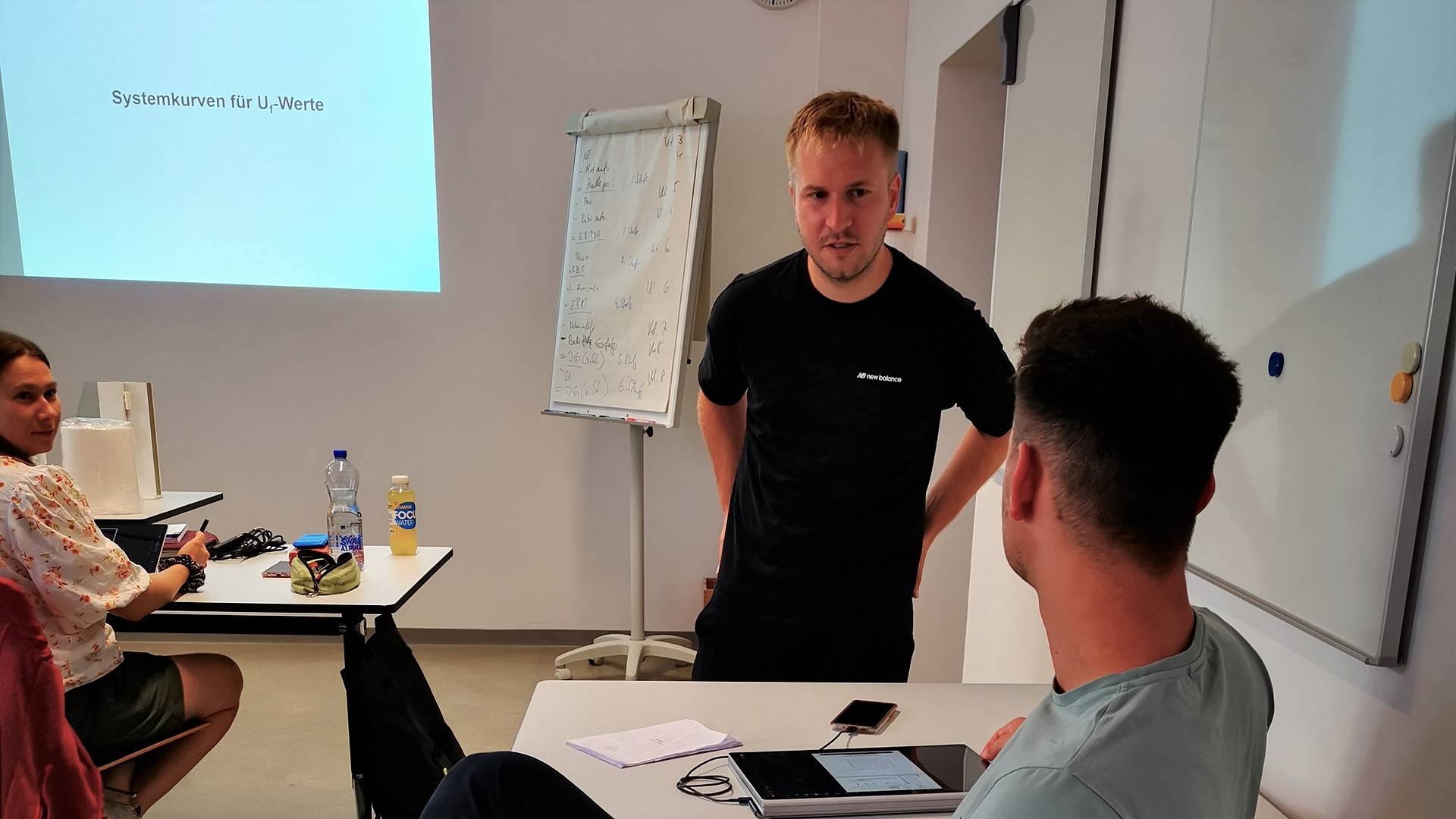 Wie viel Energie lässt ein Fenster entweichen? Dieser spezifischen Frage geht Roman Klinger, Lehrgangsleiter HF Bauplanung Vertiefungsrichtung Architektur, mit seinen Studierenden gerade nach. Im Kurs «Physik / Bauphysik» wird der U-Wert berechnet. Die Teilnehmenden fragen bei Unklarheiten sofort nach. Klingler geht auf sie ein, nimmt sich Zeit und streut immer mal wieder einen Hinweis darauf, welcher Theorieaspekt garantiert prüfungsrelevant ist.