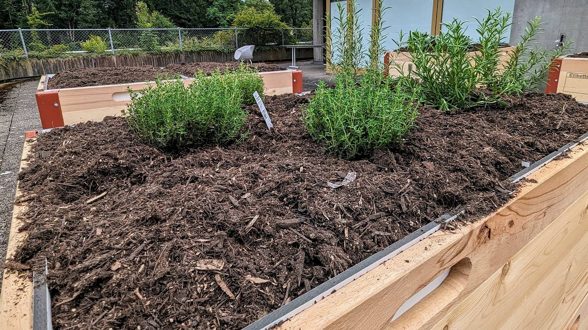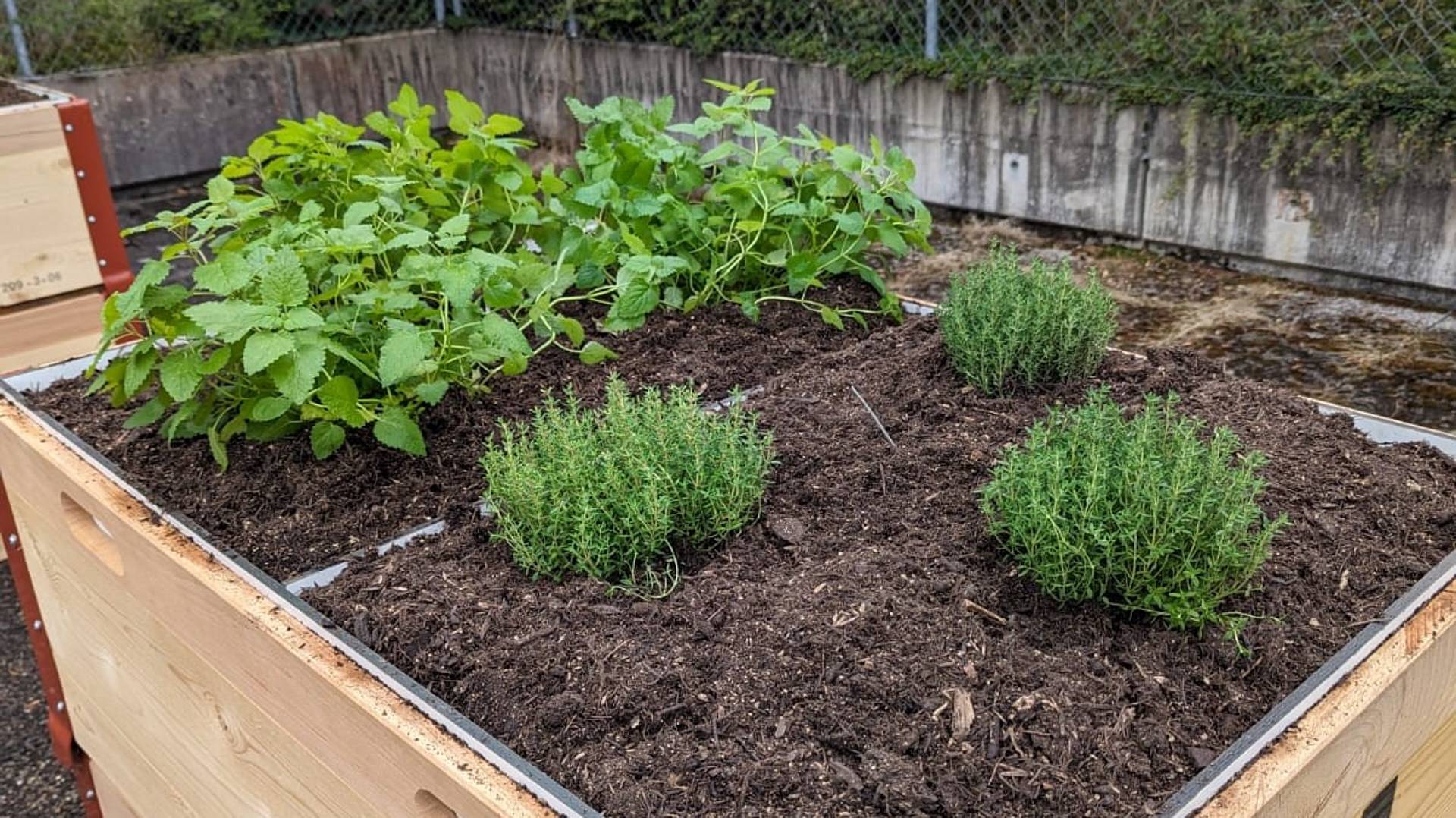 Saisonale Produkte aus der Region liegen dem Mampf-Team am Herzen. Die Gerichte werden jeweils mit Kräutern optisch und geschmacklich veredelt. Künftig werden die Kräuter inhouse gepflanzt und geerntet. Ein Besuch bei Sandro Fiorillo, der den Mampf-Kräutergarten zum Start in sein drittes Ausbildungsjahr als Fachmann Betriebsunterhalt betreut.