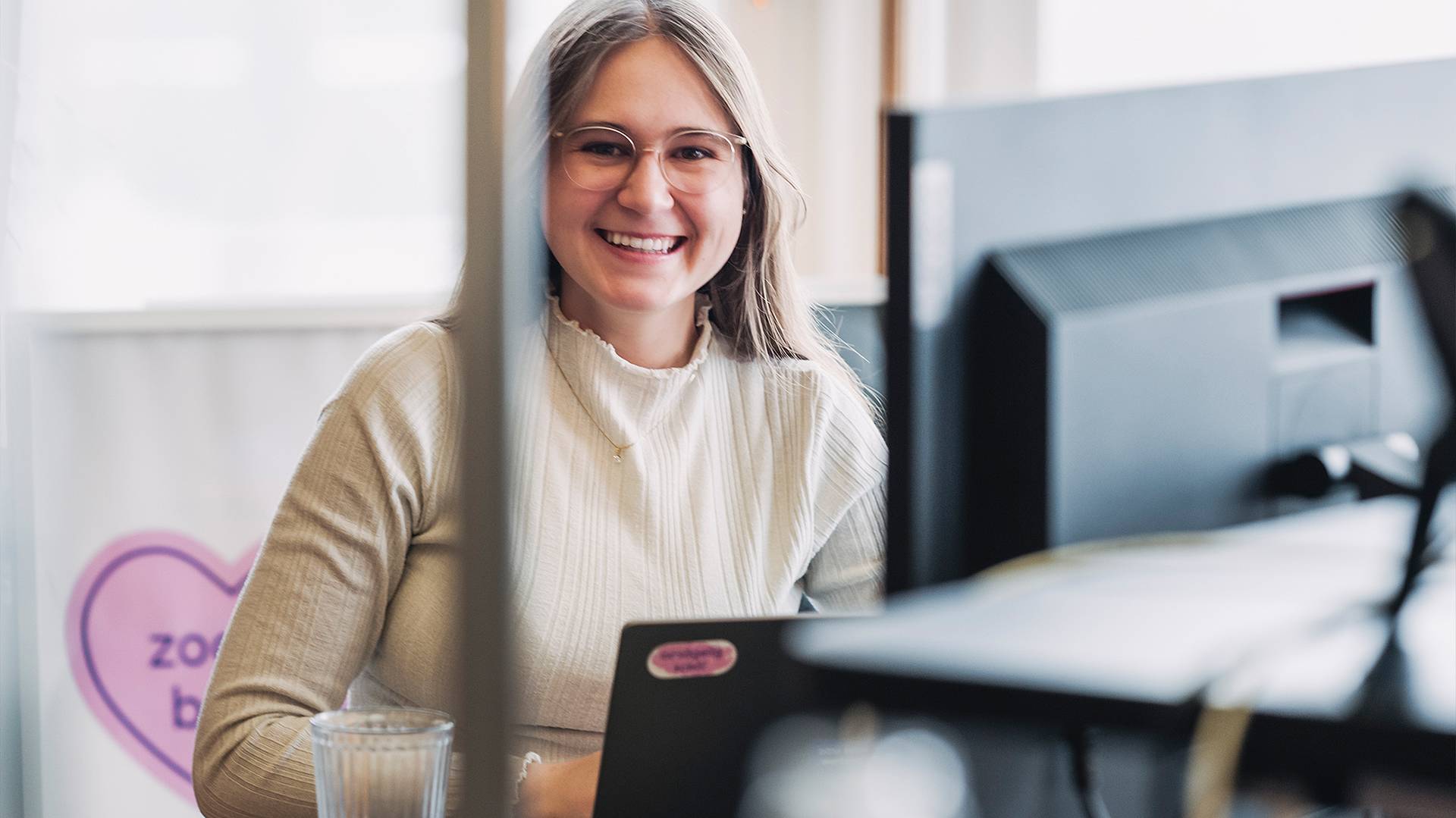 Sabrina Hänggi sieht den Vorteil darin, dass die Module an der Schule für Gestaltung St.Gallen projektorientiert aufgebaut sind. «Das heisst, ich kann im gesamten Designprozess, von der Recherche bis zur Präsentation, viel Erfahrung sammeln und dabei an Routine und Selbstsicherheit gewinnen», erklärt die Absolventin des Jahrgangs 2021 bis 2024. Sarina Beti wird nächsten Sommer ihre Diplomarbeit abschliessen und sagt über ihre bisherigen Semester: «Ich habe erlebt, was dank Teamwork alles entstehen kann. Das hilft, denn hier in der Agentur arbeiten wir auch nicht allein an einem Projekt.»