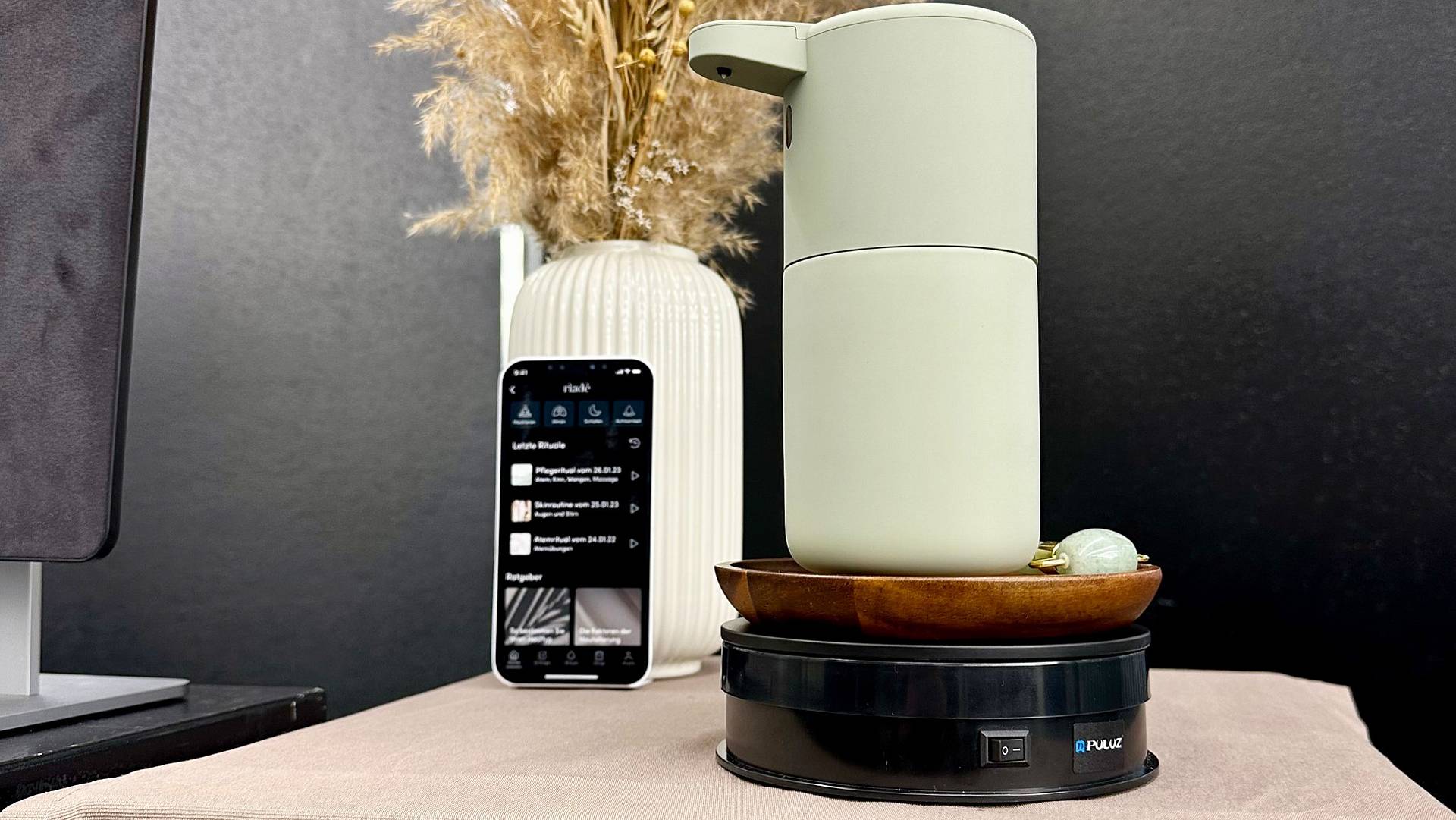 Aufgrund der eingegebenen Daten wie Hautzustand und Alter berechnet die App die korrekte Dosiermenge und leitet die Infos an den Dispenser weiter. Frischknecht hat auch an eine Push-Nachricht gedacht, die über den zu geringen Füllstand des Dispensers informiert.
