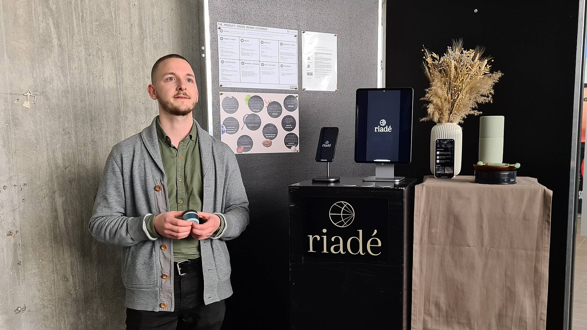 Selbstbewusst steht Frischknecht während der Präsentation seiner Vordiplomarbeit vor die Jury und erklärt im Stil eines Mediensprechers: «Riadé hat sich sofort daran gemacht, eine nachhaltige Lösung zu entwickeln. Der eigens von Riadé entwickelte Dispenser wird mit der App, die für Android und iOS verfügbar ist, mittels intelligenter Berechnung von Algorithmen für jeden Hauttyp die exakte Crème-Dosierung spenden.»