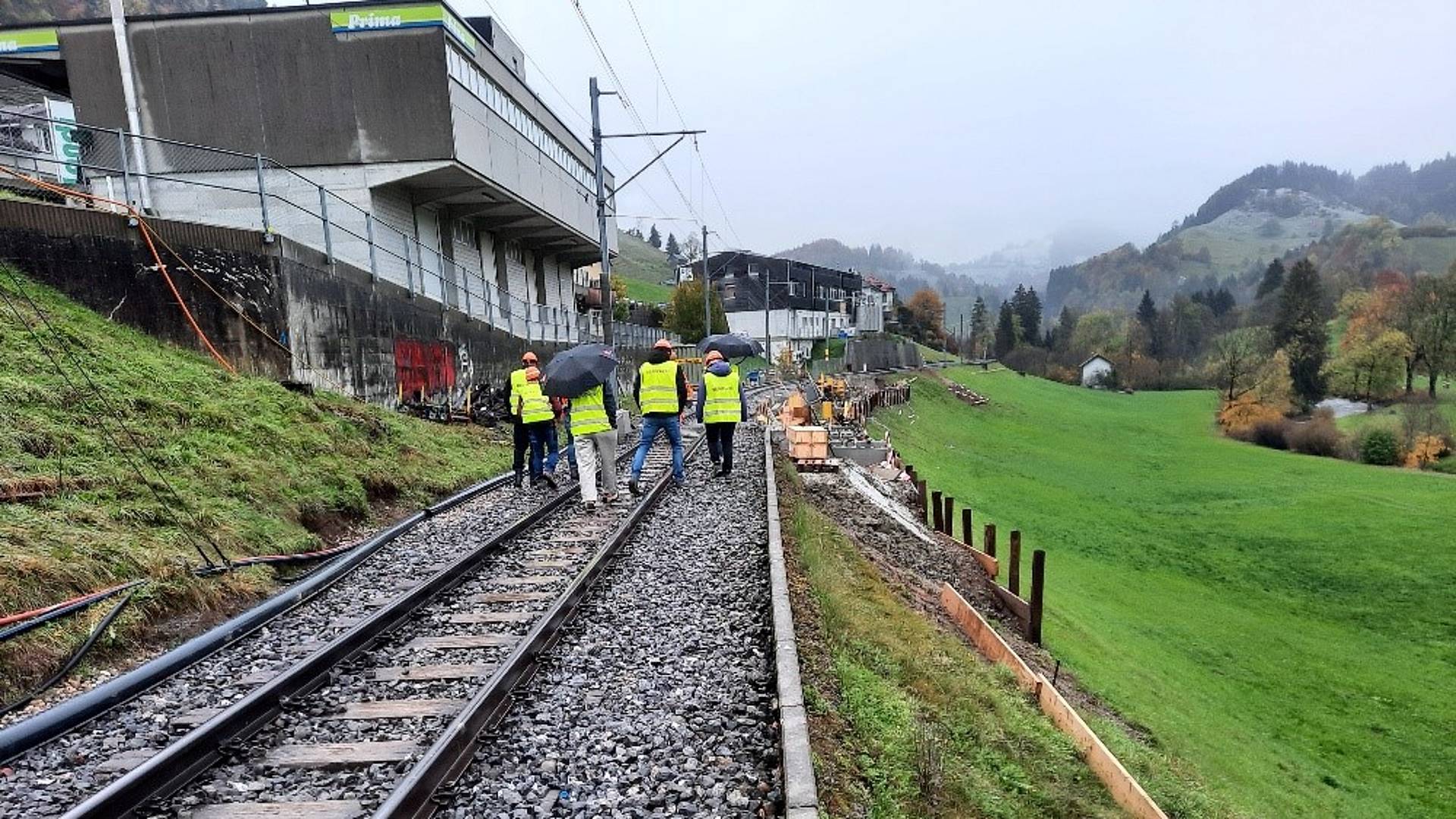 Die sechswöchige Totalsperrung auf der Linie der S23 Gossau – Appenzell – Wasserauen dauert noch bis und mit 1. Dezember 2023. Die Bauarbeiten wurden von den Bauplaner/-innen HF Studienrichtung Ingenieurbau genau verfolgt. Die Exkursion führte die Klasse zum spannenden Abschnitt zwischen Zürchersmühle und Urnäsch. Auf dieser Strecke werden Massnahmen zur Sicherung des Fahrbahntrasses umgesetzt. Das heisst, es werden rückverankerte Stützkonstruktionen und Bachdurchlässe gebaut. Phasenweise wird in drei Schichten gearbeitet (24 Stunden am Tag, 7 Tage die Woche), damit das Bauprogramm eingehalten werden kann.