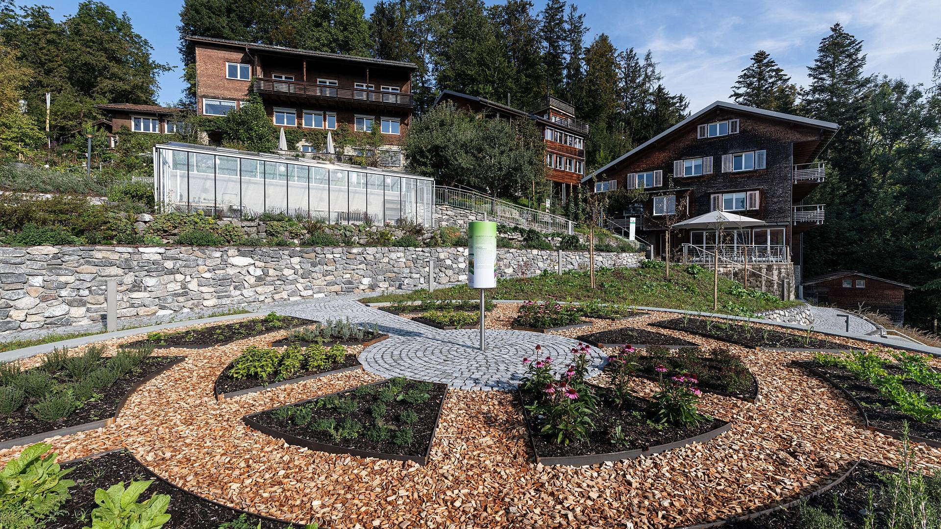 Roger Wälchlis Anekdoten von der ersten Bauetappe zeigen auf, wie viele Details als Bauleiter/in beachtet werden müssen. Die Studierende Céline Riedener bemerkte: «Die Lage der Baustelle befindet sich am Hang und ist damit alles andere als gewöhnlich. Speziell ist auch, dass der Garten zwar neugestaltet wurde, aber am selben Ort bleiben musste.» Gemeinsam mit den anderen Lehrgangsteilnehmenden durfte sie zu Beginn der Exkursion im Heilkräutergarten Zutaten für das eigene Olivenöl sammeln. Niemand verliess den Hätschen somit ohne Souvenir.
