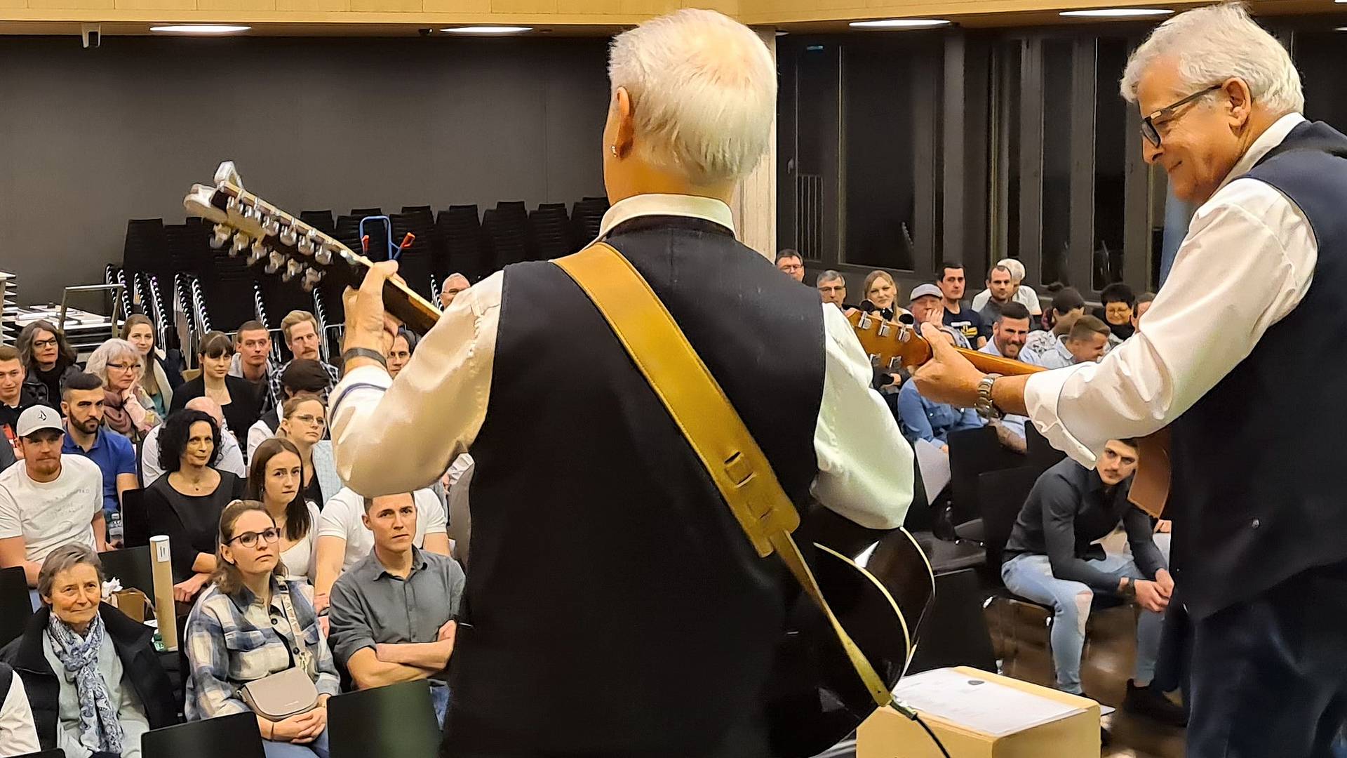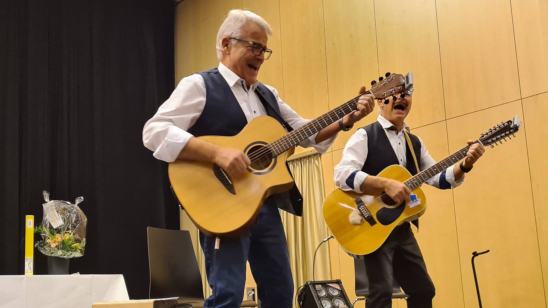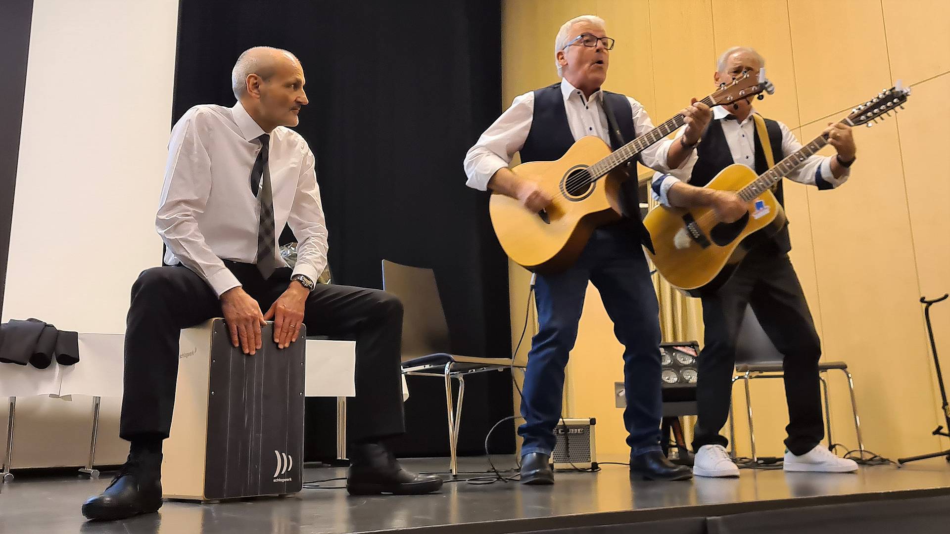 Apropos Rednerpult: Den kürzesten Auftritt am Mikrofon hatte Andreas Looser mit einem Satz. Er unterrichtet seit August 2004 an der Baukaderschule. «Sein grosses Engagement für den Berufsnachwuchs ist Ausdruck seines Berufsstolzes», sagte Bruno Mitterer und verlieh ihm den Ehrenpalier. «Dass ich noch Polier werde, hätte ich nie gedacht», sprach der gelernte Bauingenieur Andreas Looser unter Applaus zu den Anwesenden. Es wurde nicht zum letzten Mal geklatscht, denn der musikalische und stimmungsvolle Höhepunkt folgte noch mit dem spontanen Auftritt von Bruno Mitterer mit den SwissSingers.