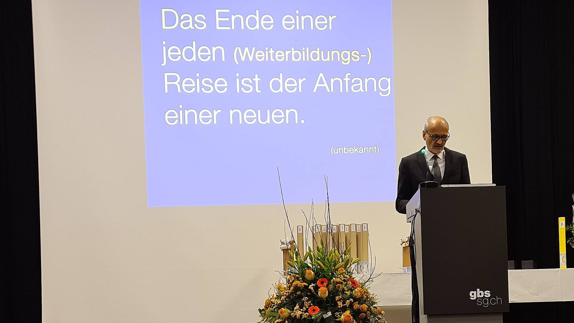 Bereits während der Begrüssungsrede von Jan Fischer, Prorektor Weiterbildung und Brückenangebote, schwang das Stimmungsbarometer ein erstes Mal obenaus. Als er sich unter anderem bei Christina Gut, Leitung Sekretariat Baukaderschule, und Lehrgangsleiter Roland Lohri für die geleistete Arbeit und ihr Organisationsgeschick im Speziellen bedankte, brandete ein spontaner Zwischenapplaus durch die Riethüsli-Aula.
