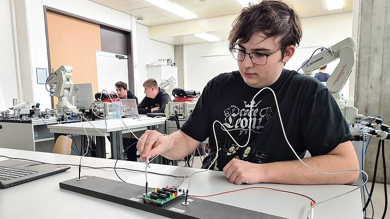An unserer Ausbildung zum Elektroniker gefällt uns die Abwechslung. Du setzt dich sowohl mit der Software, als auch mit der Hardware auseinander und sitzt nicht nur am Computer, sondern besuchst auch die Werkstatt. Es ist wichtig, selber über die Abläufe nachzudenken und sie zu verbessern.»