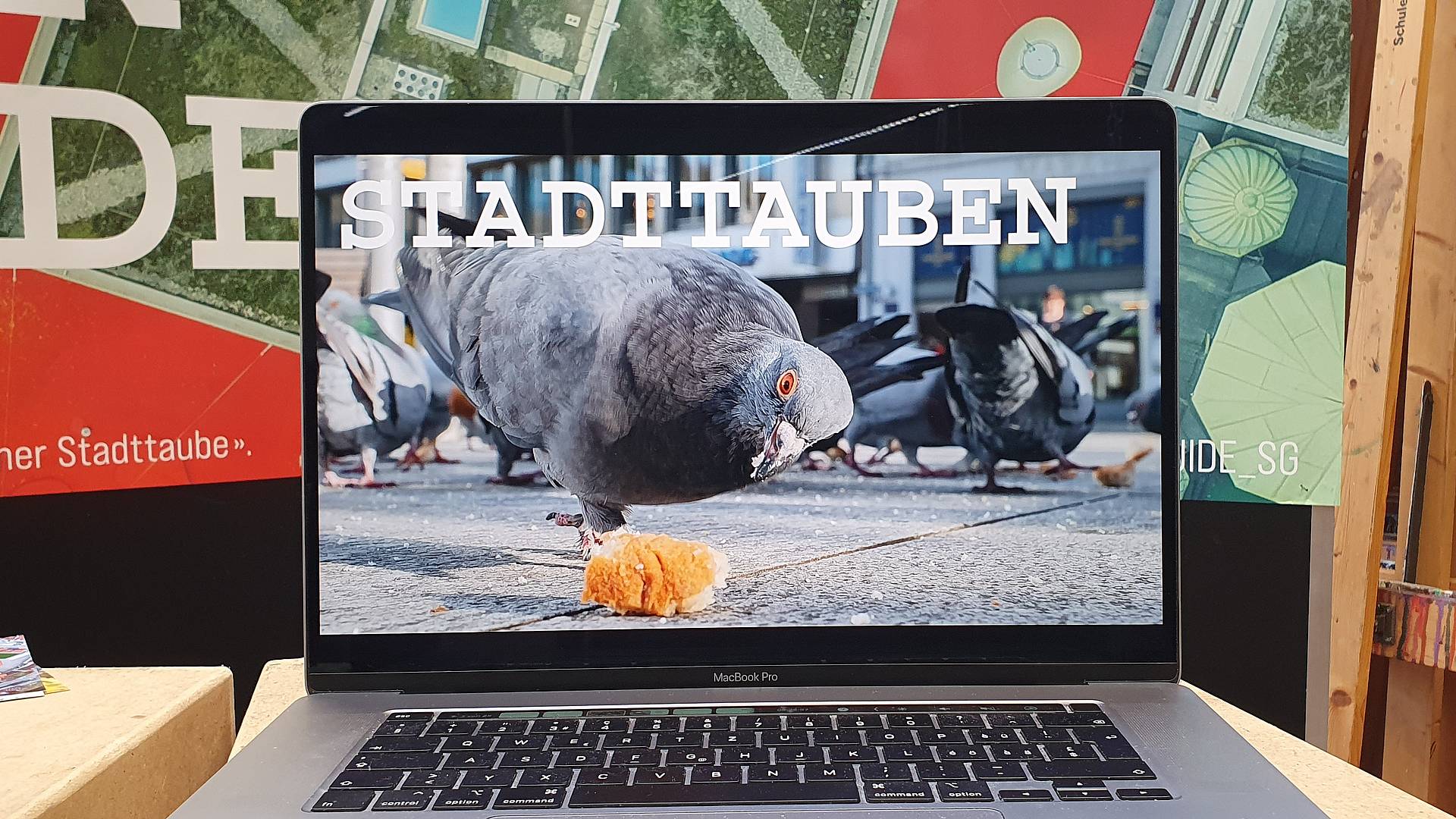 Tauben werden oftmals auch «Ratten der Lüfte» genannt. Sie gelten im Volksmund als Plage und als Krankheitserreger. Und trotzdem prägen sie auch hier in St.Gallen das Stadtbild mit. Jana Grand liefert in ihrer Vordiplomarbeit Gründe, weshalb Stadttauben mehr Wertschätzung verdienen. In ihrem «GURRR Tour Guide» zeigt sie die Stadt St.Gallen aus der Sicht einer Stadttaube. «Man lernt die Stadt aus anderen Blickwinkeln kennen und unterstützt bei seiner Entdeckungstour die Volieren Gesellschaft St.Gallen», erklärt Jana Grand.
