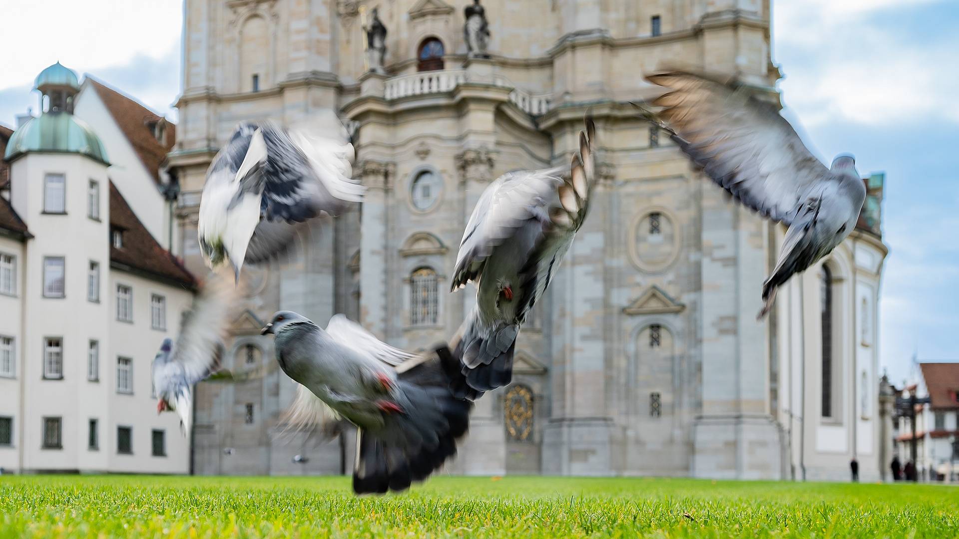 Gurrr. Aus diesen Perspektiven hast du St.Gallen noch nie gesehen. Jana Grand hat zur Halbzeit ihres berufsbegleitenden Studiums Visuelle Gestaltung HF einen Tourguide aus Sicht der Stadttauben entworfen.