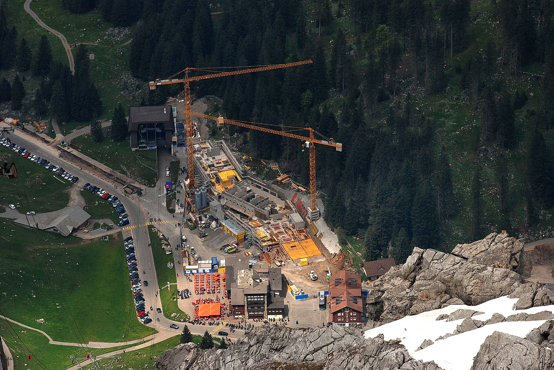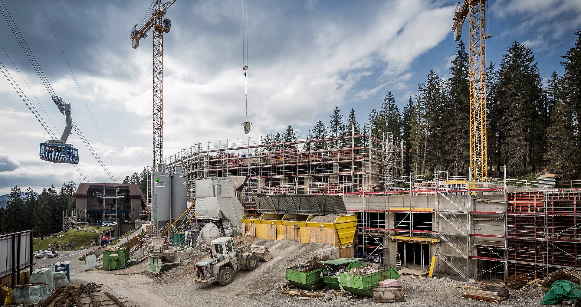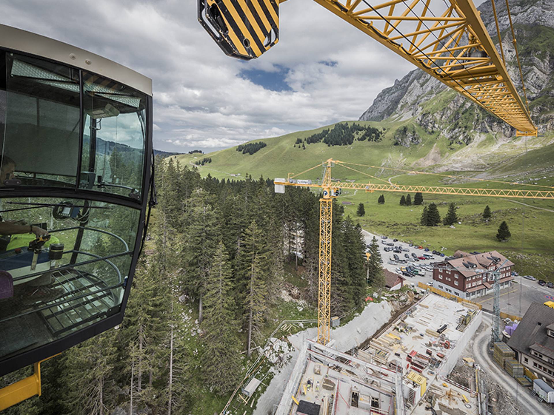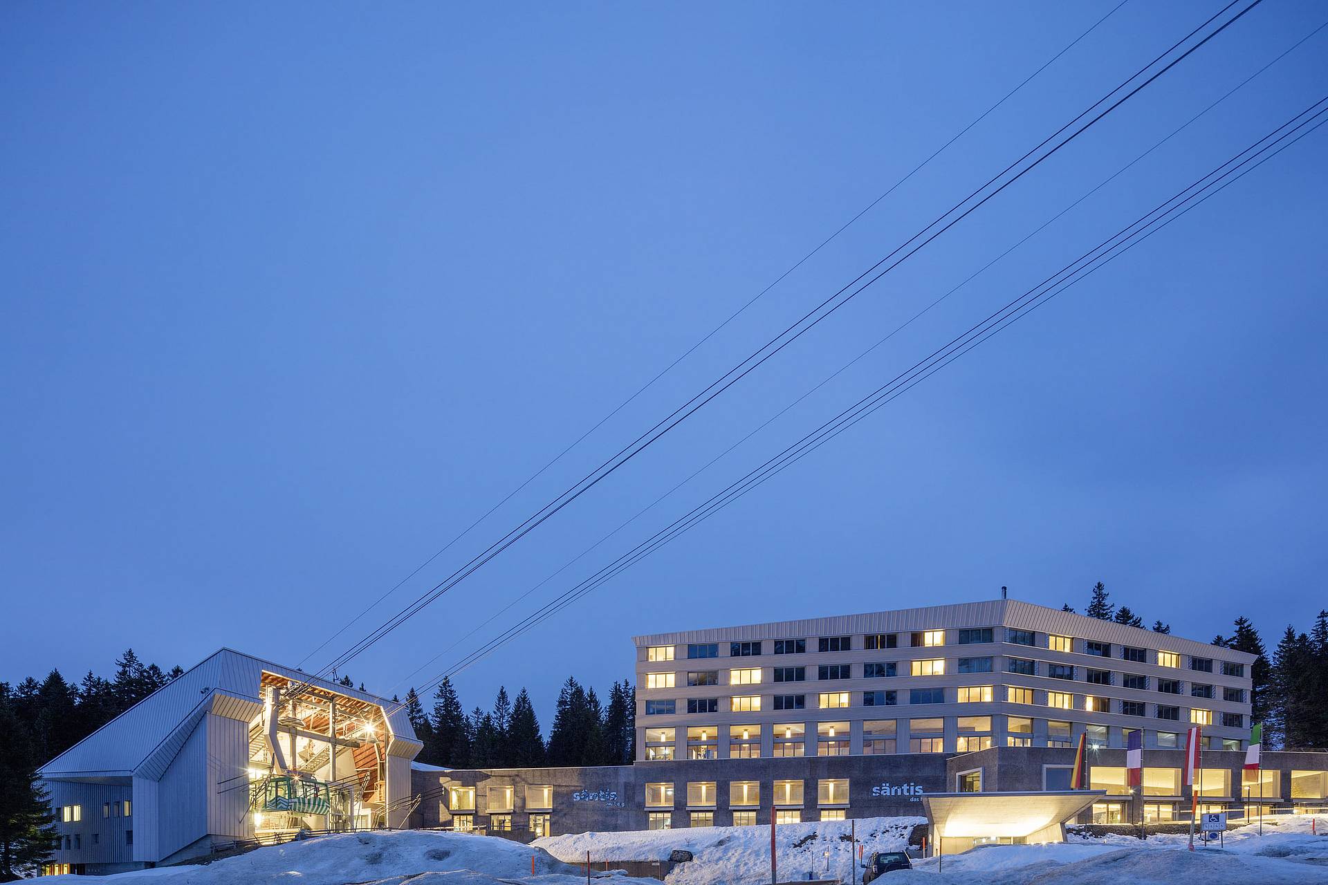 Ein Projekt, das heraussticht, ist das Hotel Säntis auf der Schwägalp. Unter der Leitung von Florian Schällibaum wurde das damalige Vorprojekt für einen Hotelneubau überarbeitet, optimiert – und letztlich realisiert. «Schon alleine aufgrund der Dimension war das für uns ein spezielles Projekt», sagt der Architekt. Die Herausforderung: Der Neubau muss einerseits Tagestouristen und Ausflüglern gerecht werden, andererseits aber auch ein ruhiger Ort für Hotelgäste und Tagungsgäste sein. Trotz der Grösse musste beim Bau auf die natürliche, geschützte Umgebung Rücksicht genommen werden. Es galt etwas zu erschaffen, das sich in den bestehenden Kontext einfügt.