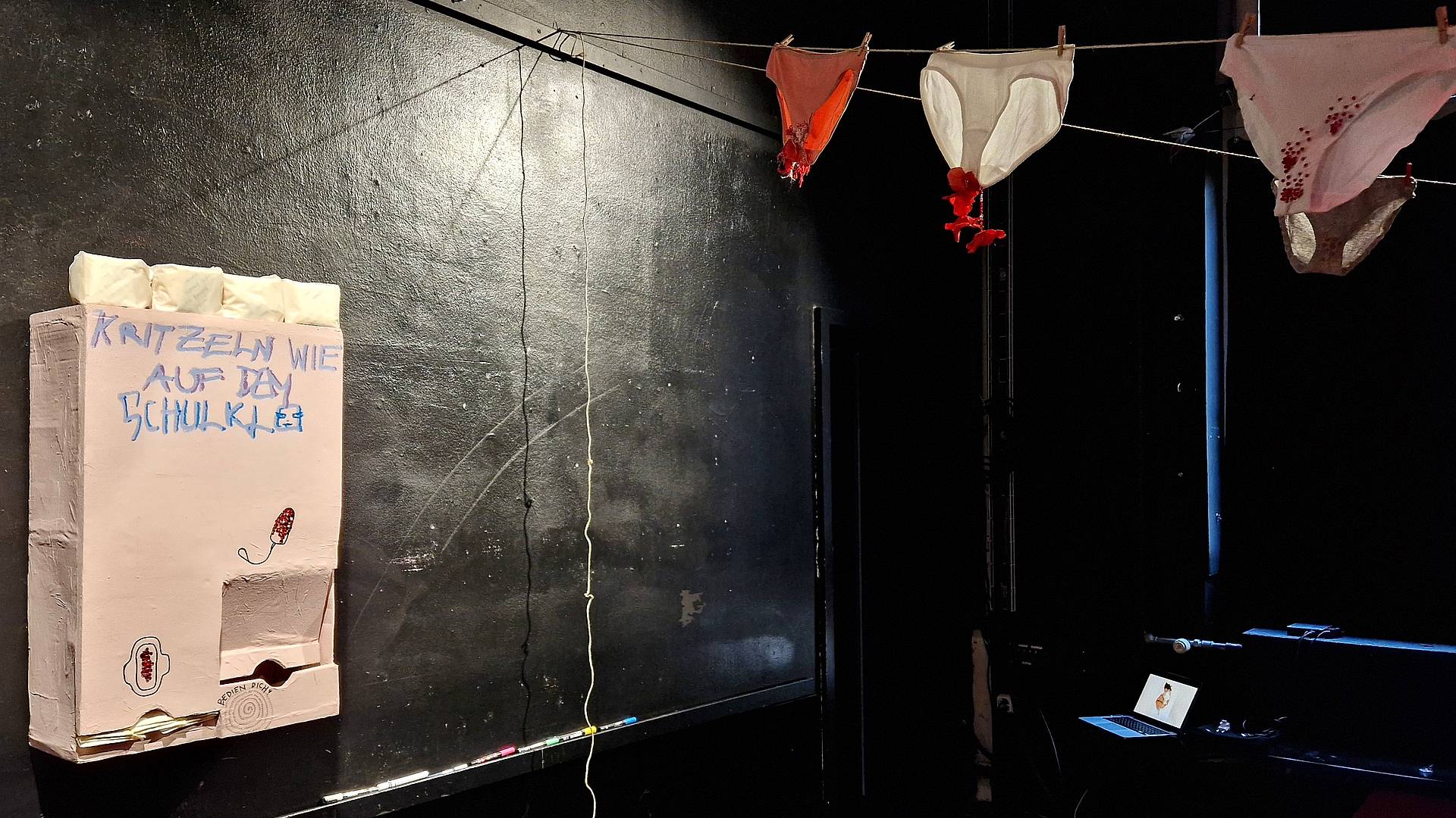 Mit ihrer Rauminstallation «St.Gallen kriegt ihre Tage» wollen die Berufsmaturitätsschülerinnen eine neue künstlerische Perspektive zur monatlichen Blutung geben. Durch diese Sichtbarkeit sollen patriarchale Strukturen abgelöst werden. «Wir sind während einer Mittagspause auf die Idee gekommen. Dieses wichtige Gesellschaftsthema interessiert uns alle», sagt Tonja Merz. Hanna Schuster bilanziert, dass sie alles umsetzen haben können, was sie sich vornahmen. Auch Sara Vetsch ist zufrieden: «Alles ist aufgegangen, nichts ist schief gegangen.»