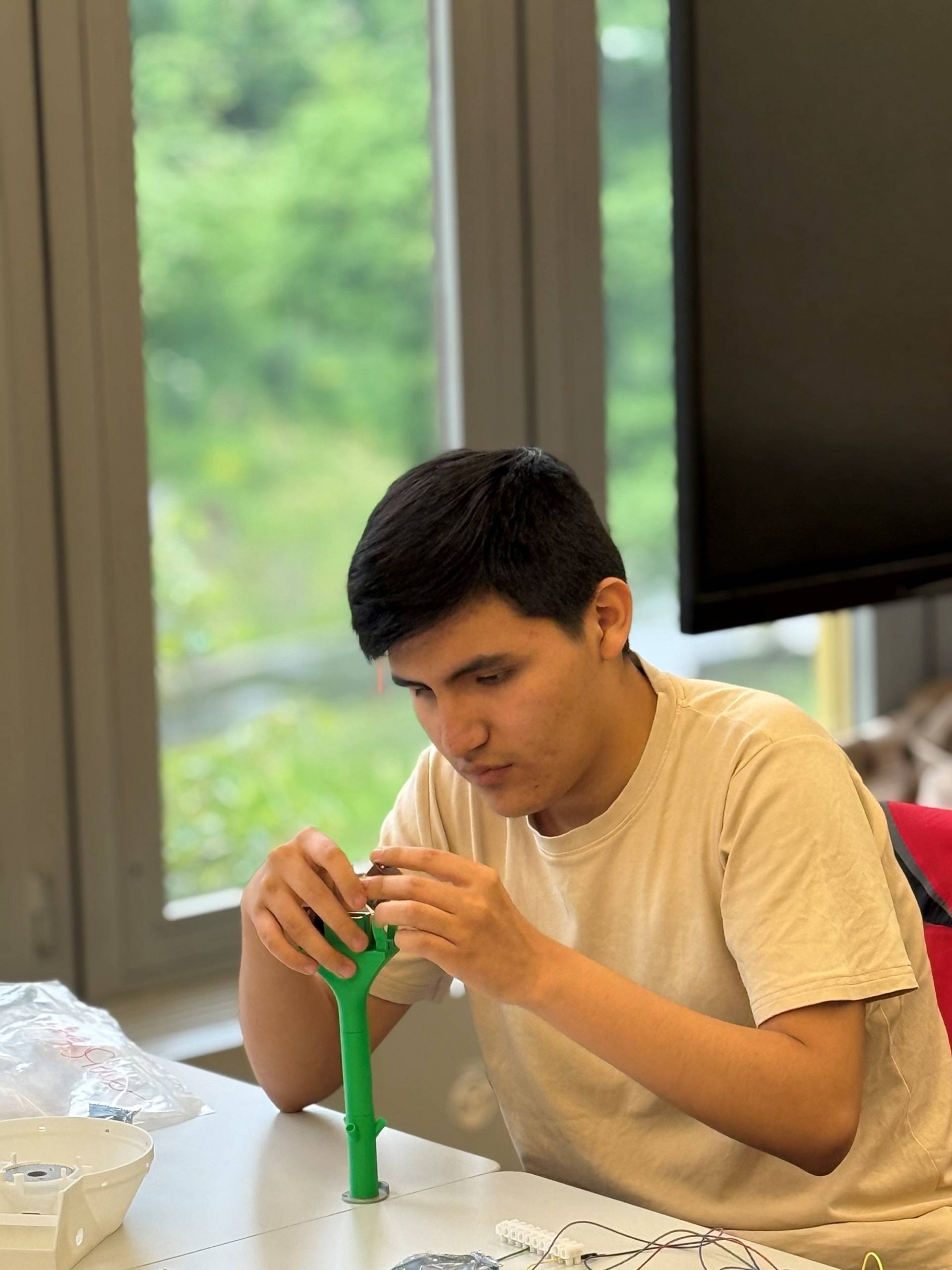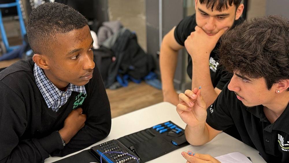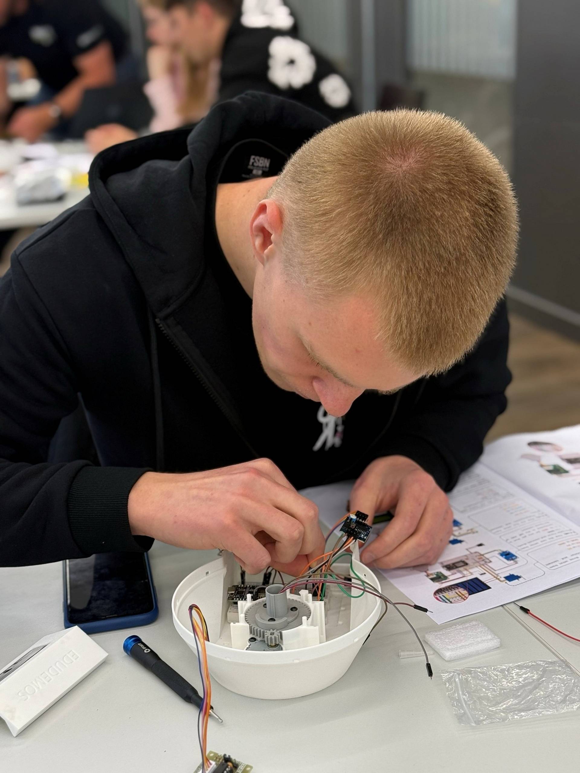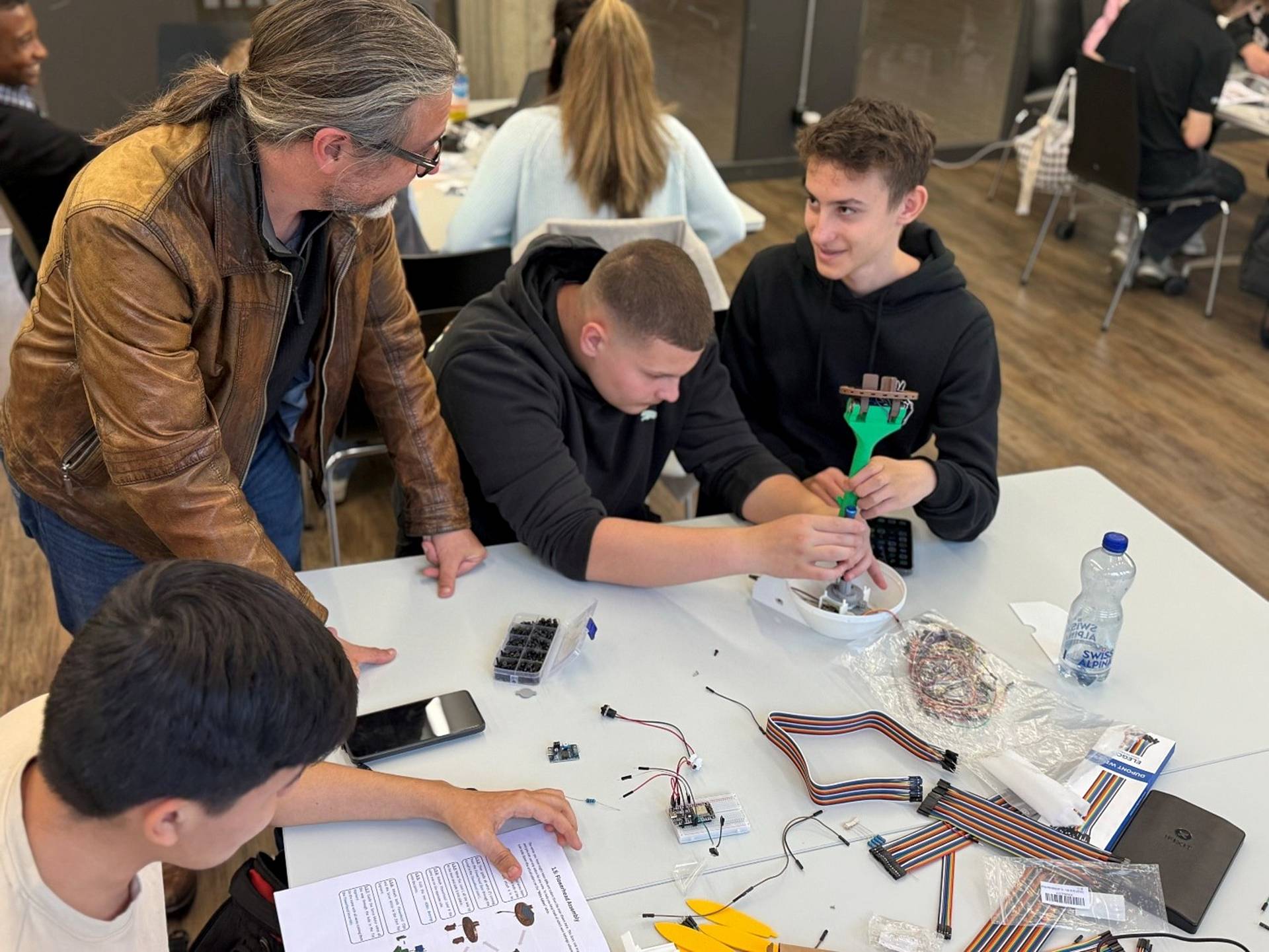 «Ein Schnappschuss, der sinnbildlich für diesen besonderen Tag steht: Die vielen farbigen Drähte erinnern nicht nur an technische Vielfalt, sondern auch an die bunten, lebendigen und wertvollen sozialen Verbindungen, die an diesem Tag zwischen den Jugendlichen entstanden sind.»