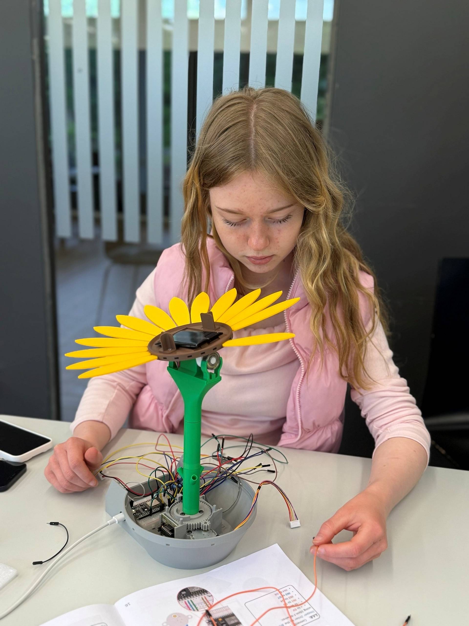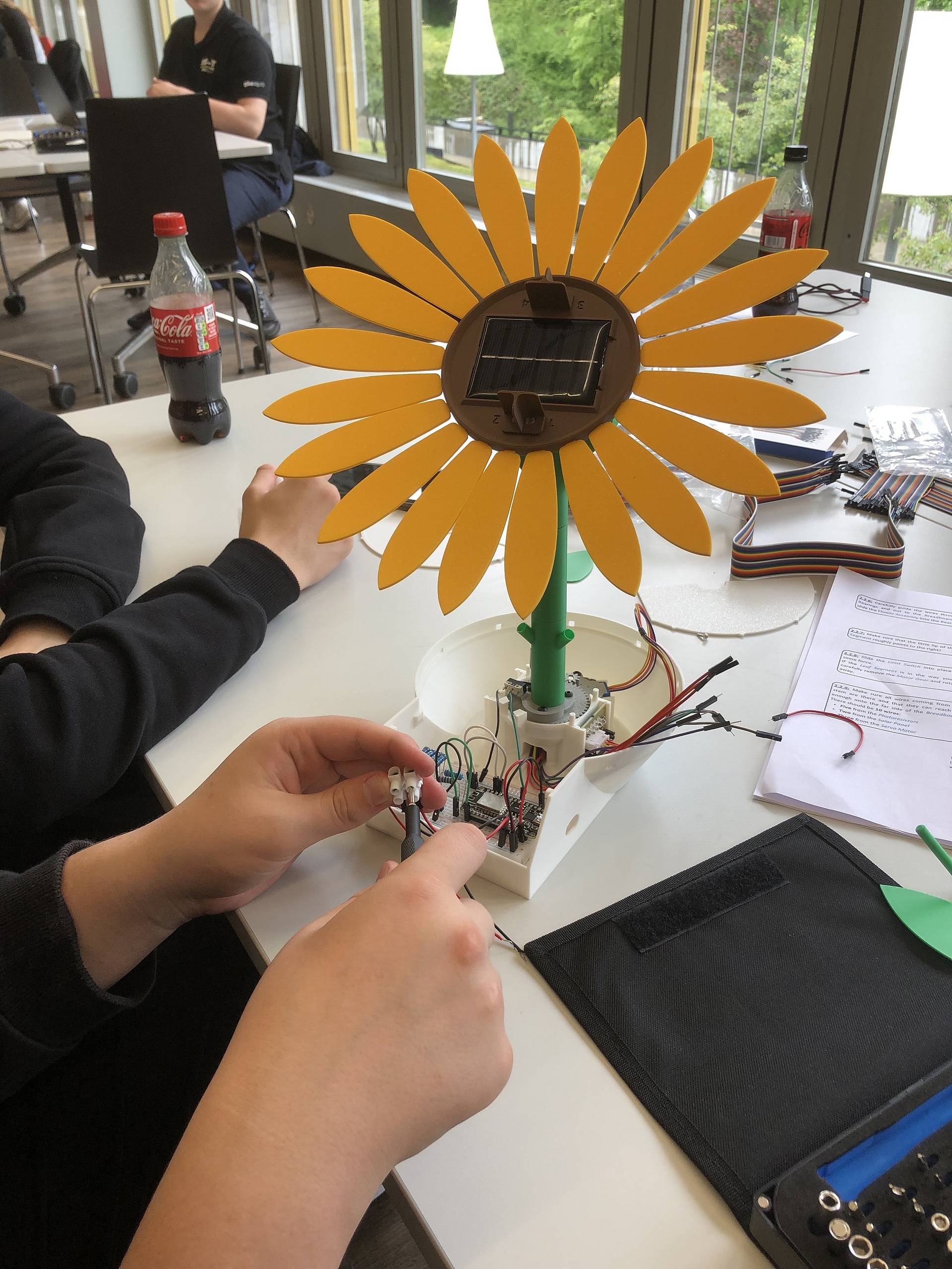 Am Ende des Projekttags entstand aus vielen kleinen Bauteilen ein beeindruckendes Ergebnis: eine technisch funktionierende Sonnenblume, die sich dank Solarpanel zur Lichtquelle ausrichtet. Sie steht sinnbildlich für das, was an diesem Tag gewachsen ist: Wissen, Zusammenarbeit und das gemeinsame Erleben von Erfolg. «Bildung blüht, wenn wir Vielfalt als Stärke begreifen – und genau das haben wir mit diesem Projekt gemeinsam geschafft», sagt Joka Obrenovic, Lehrerin Integrationskurse.