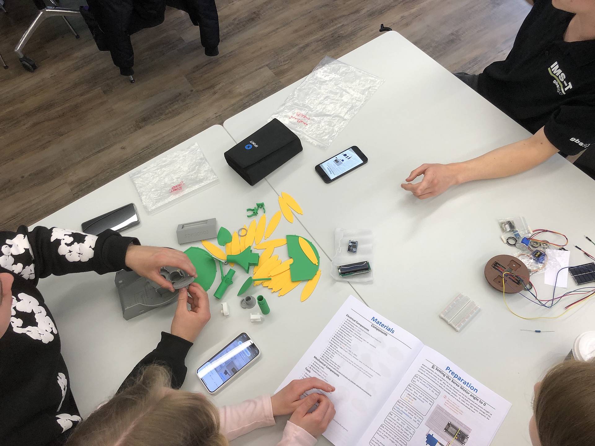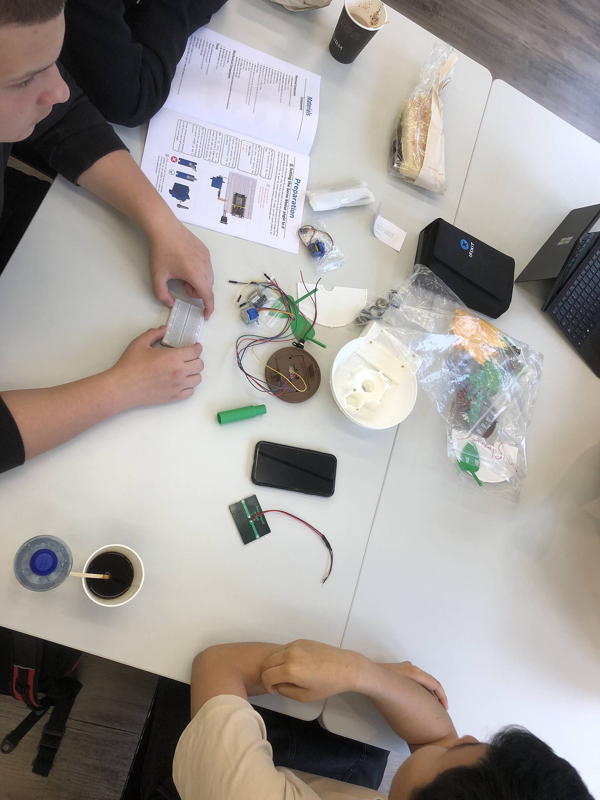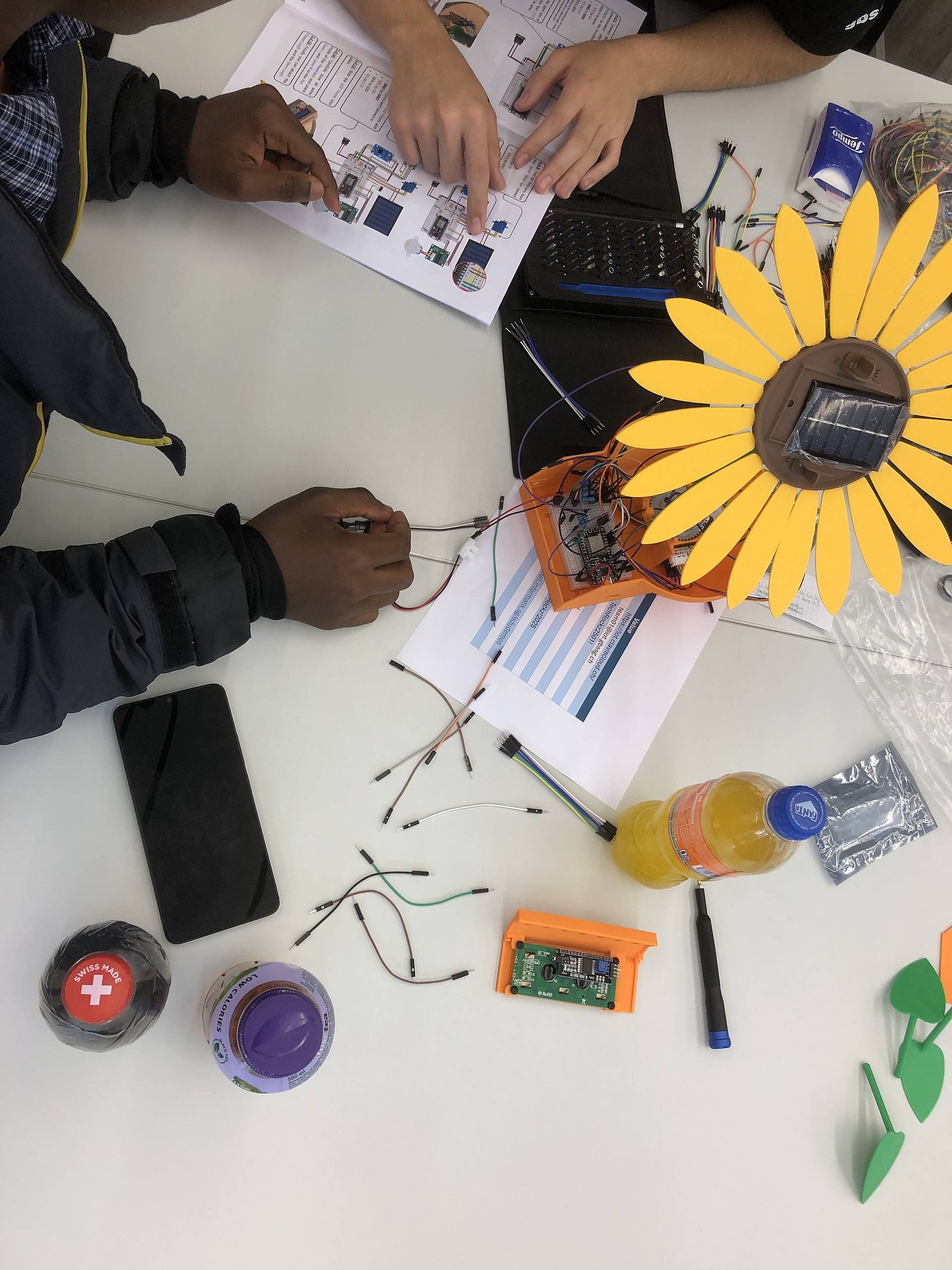 Die Lernenden der IMS-T am GBS St.Gallen geben ihr Wissen weiter. An der EduDemoS Local Student Academy im Riethüsli sorgten sie gemeinsam mit Jugendlichen der Integrationskurse für ein blühendes Ergebnis: Eine Solarsonnenblume wurde gebaut und in Betrieb genommen. Diese Bildungsinitiative wird durch das Erasmus+-Programm der Europäischen Union gefördert und finanziert.