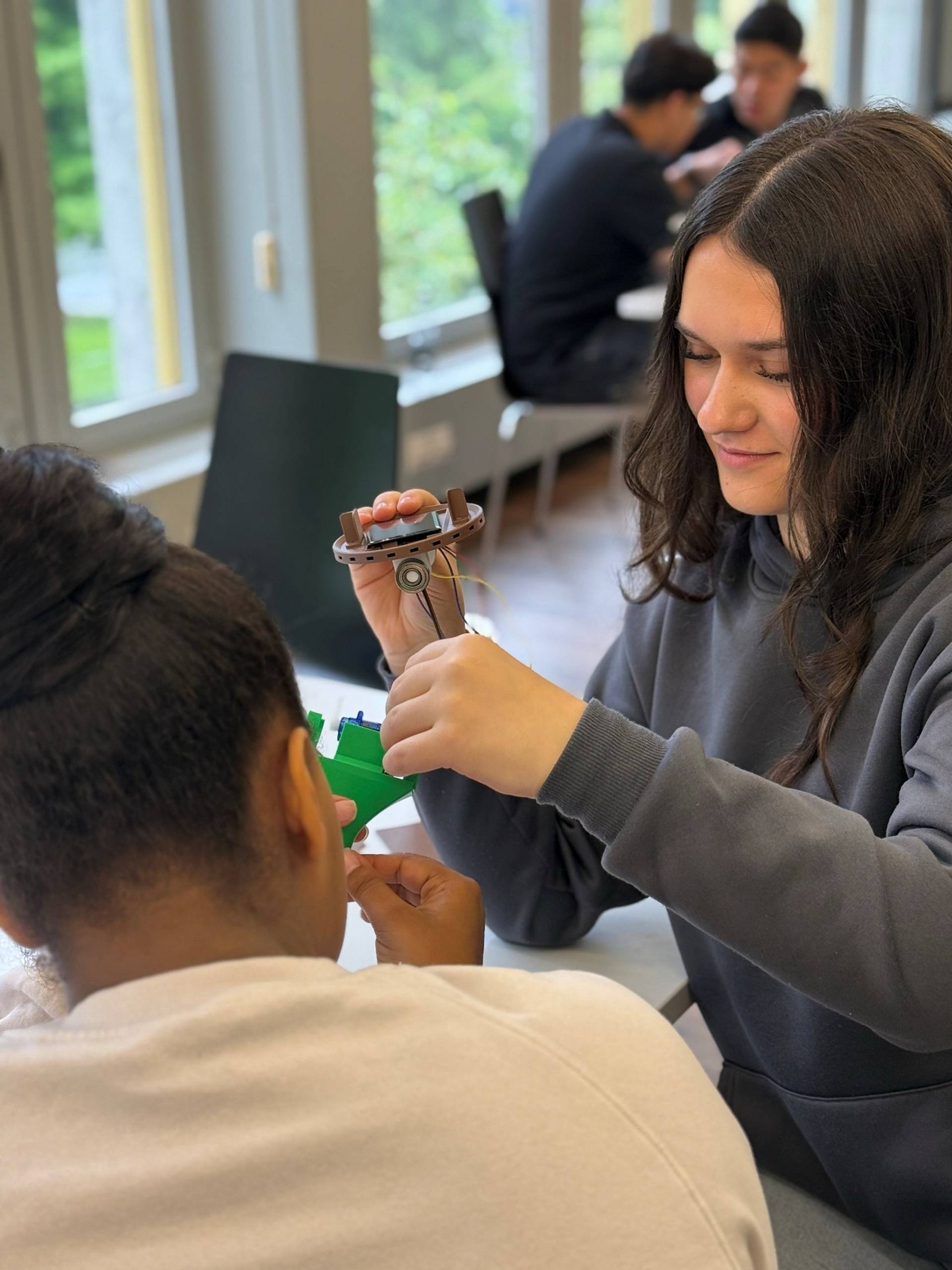 Zurück in der Schweiz empfing die IMS-T Jugendliche aus den Integrationskursen des GBS St.Gallen in der Medienlounge. Es entwickelte sich eine interkulturelle, vernetzte und nachhaltige Zusammenarbeit auf Augenhöhe. Ob Bauen, Erklären oder Entdecken – die Luft war vollgepackt mit Neugier und Entdeckerlust.
