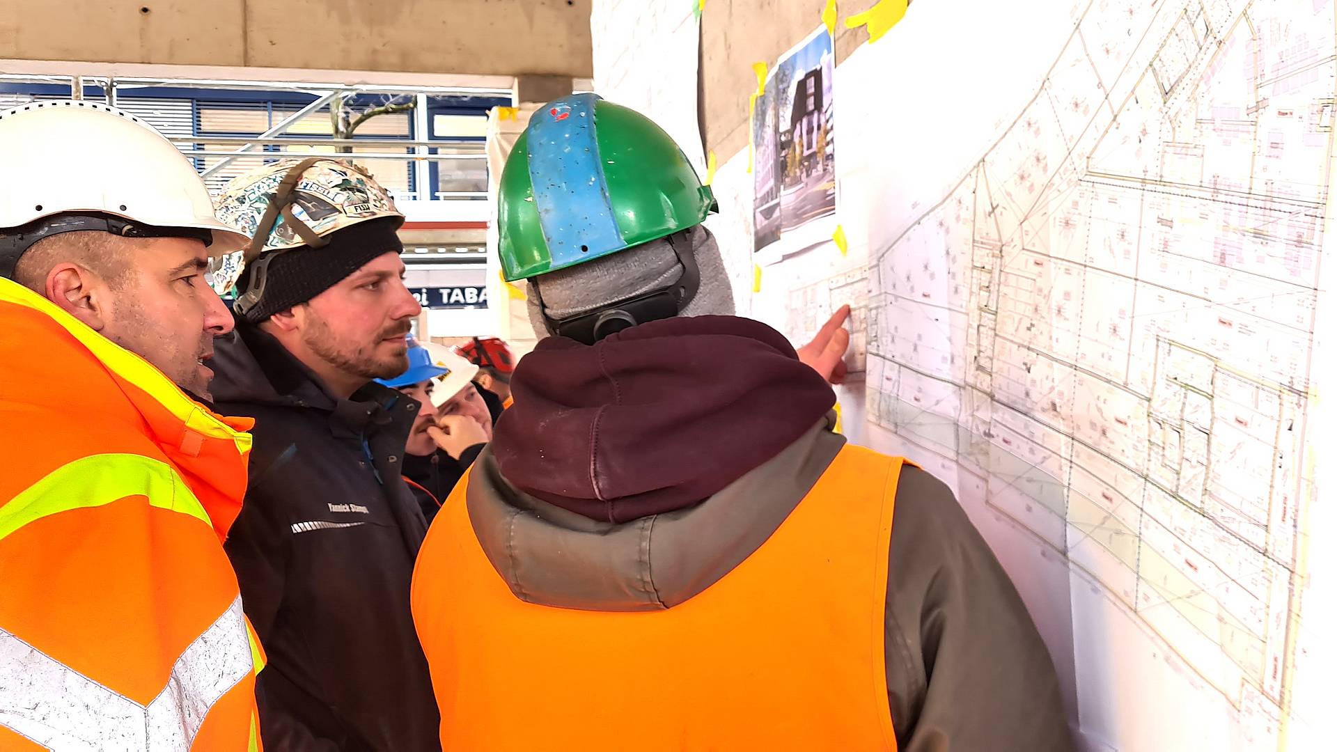 Alleine die rund 3000 Fuhren an Materiallieferung müssen akribisch genau geplant werden. Die insgesamt 1400 Tonnen Baustahl oder 14'000 Kubikmeter Beton werden über dieselbe Strasse geliefert wie der Busverkehr und auch der Arbeitsverkehr rollen. Claudio Fuchs sagt: «Es ist eine Baustelle mit vielen Finessen. Eine Frage, die uns beschäftigt ist: Wie bringe ich wie viel Material wann wohin?»