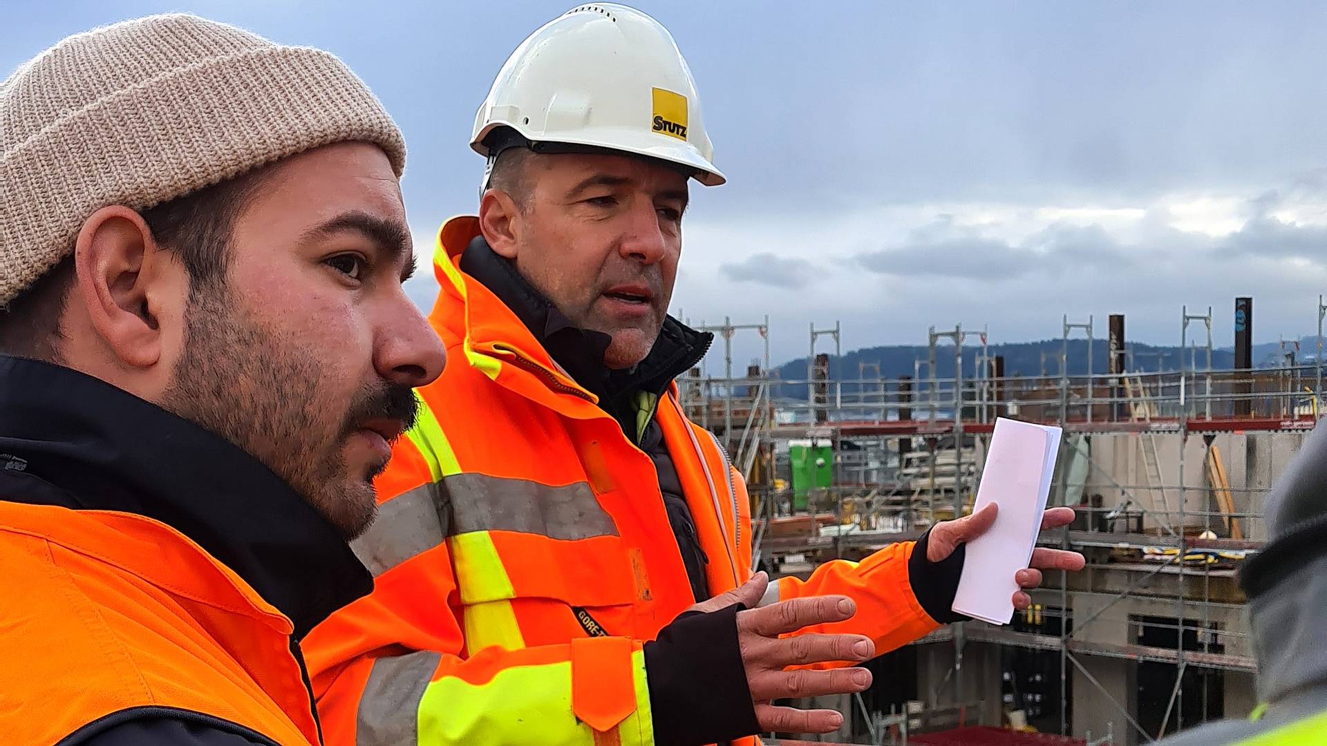 Im ersten Quartal 2026 sollen die Gewerbeflächen und die Wohnungen bezogen werden – nach fünf Jahren Planung und Bauzeit. Bis dahin werden die Studierenden selbst einige Jahre Berufserfahrung als Baupoliere/-innen gesammelt und allenfalls schon die Weiterbildung Bauführer/-in HFP in Angriff genommen haben. Auch Claudio Fuchs und Willy Heimann waren an der Baukaderschule St.Gallen im Unterricht. Umso mehr freute es die beiden, dass es immer noch einen Nachwuchs gibt, der am Baugewerbe interessiert ist.