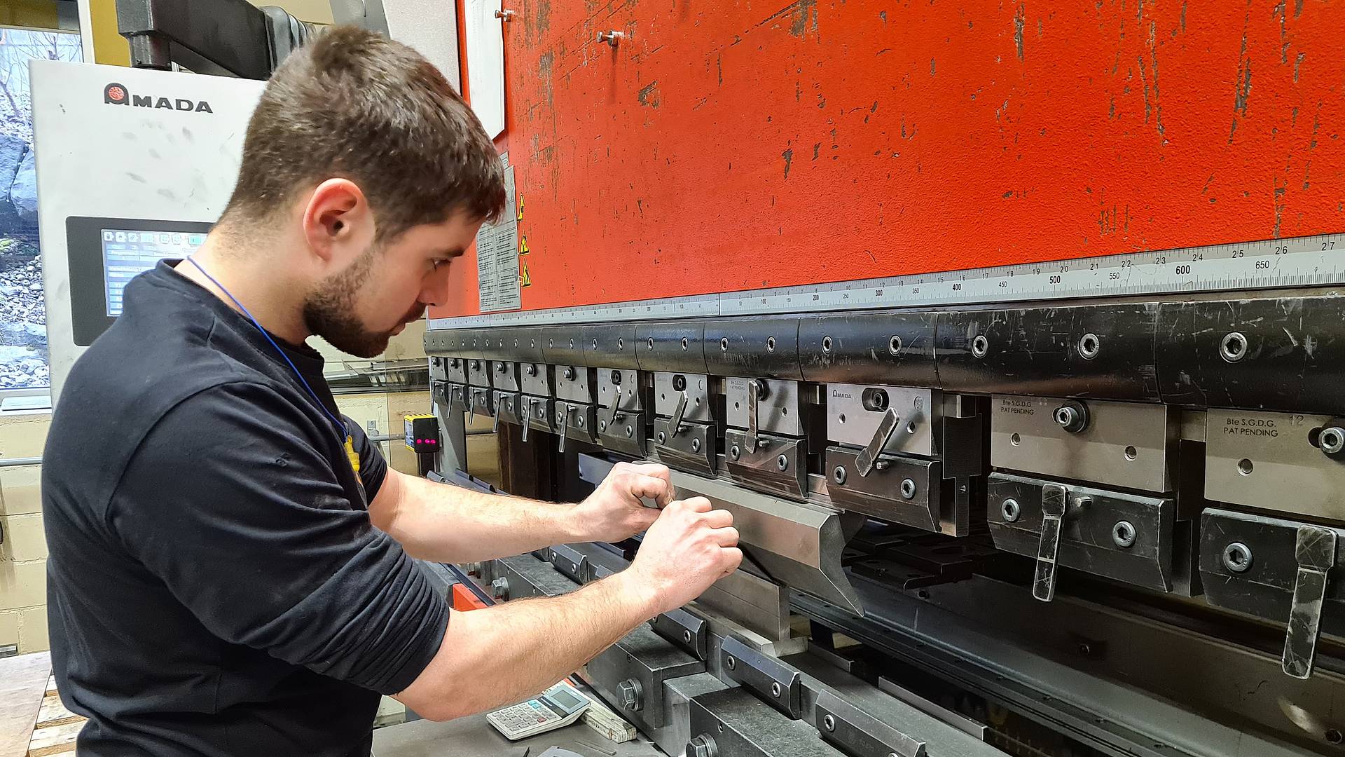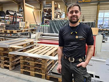 Abkanten, walzen, schleifen und schweissen – Marco Manser fasziniert, wie vielfältig die Metallverarbeitung ist. «Obwohl Metall ein kalter Werkstoff ist, kannst du es für alles einsetzen», sagt der Absolvent des Lehrgangs Metallbau-, Werkstatt- und Montageleiter*in mit eidg. Fachausweis FA. Eine Aussage aus dem Studium an der Baukaderschule St.Gallen prägt seine Arbeit bei der Grütter Metallwaren AG in Herisau besonders.