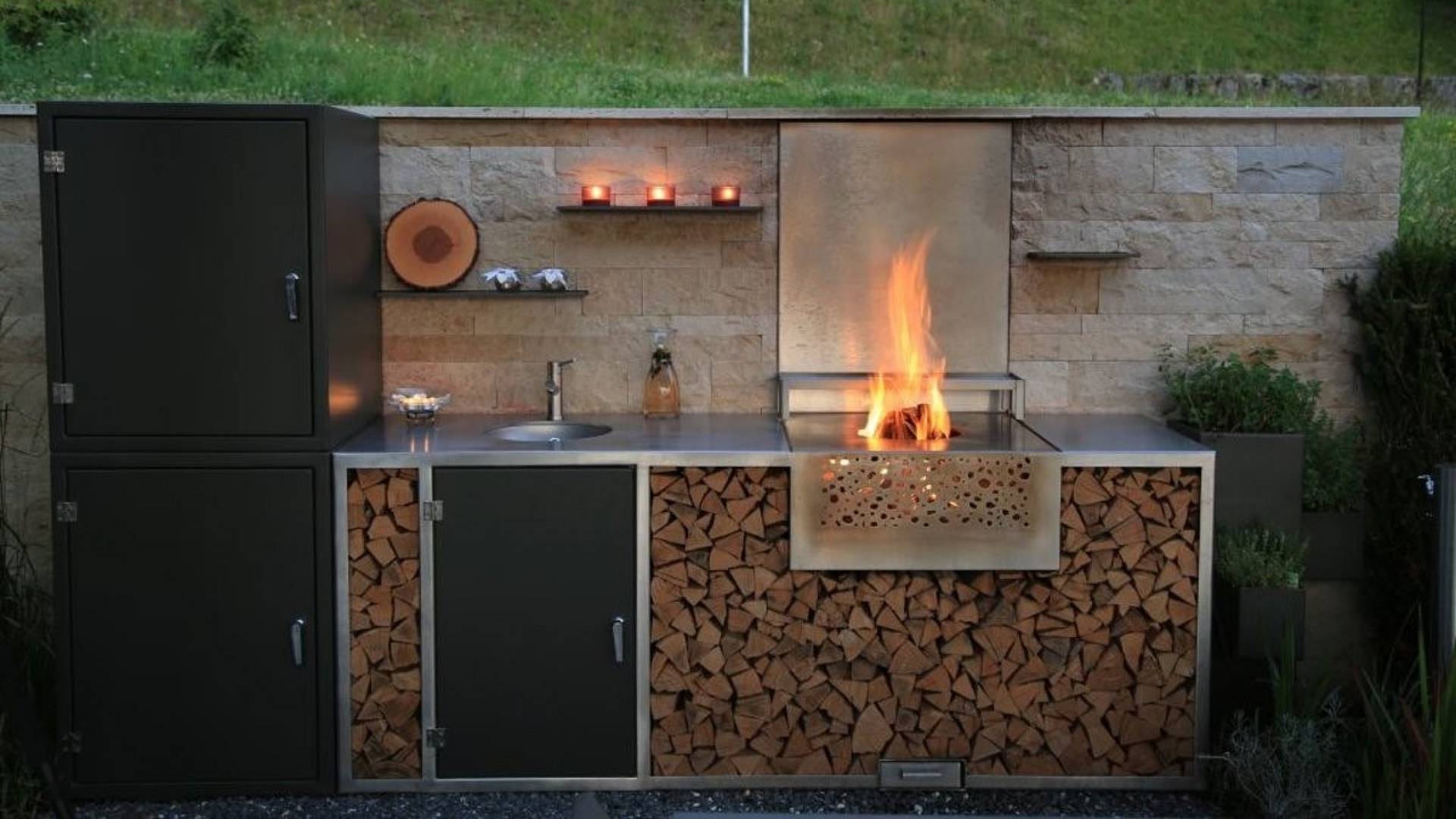 Viel lieber mit Fragen durchlöchert wird Marco Manser jeweils an der Gartenmesse Giardina in Zürich. Die Grütter Metallwaren AG präsentierte dieses Jahr neu eine Outdoor-Küche der firmeneigenen Marke Flammengrill. Marco Manser erklärt: «Der ist modulartig aufgebaut. Von Holzlager über Kühlschrank bis zu Gasgrill oder Waschbecken ist alles möglich. Weil neu nur noch der Grill selbst aus fünf Millimeter dickem Chromstahl hergestellt ist, sind die Module leichter und von Hand tragbar.» Ein weiteres Beispiel dafür, wie Metallbauer*innen gekonnt mit ihrem bevorzugten Stoff variieren.