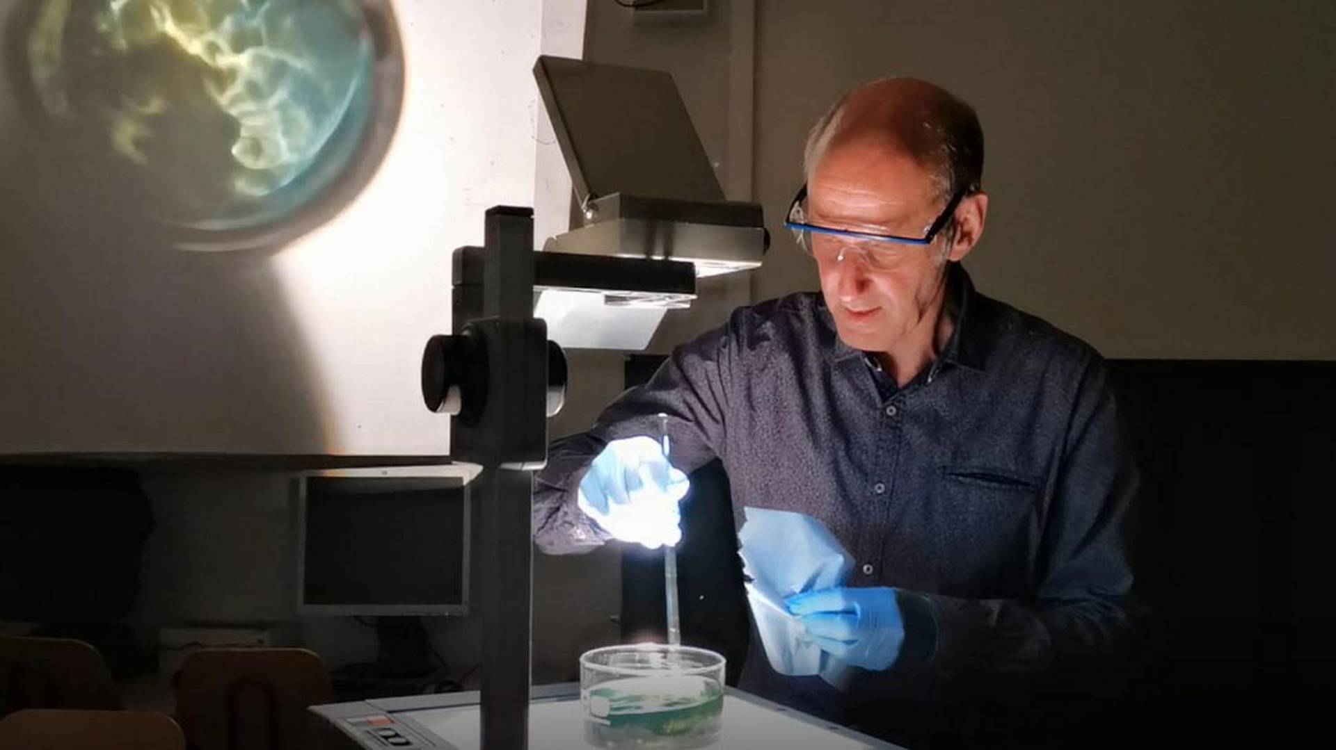Jürg Pfeiffer, Abteilungsleiter Technische Berufe am GBS St.Gallen und BKU-Lehrperson FB Laboranten, zeigt dem Lehrerkollegium und den Lernenden Laboranten des 1. Lehrjahrs ein Laborexperiment. Ob die Moleküle auch tatsächlich das machen, was Jürg Pfeiffer will? Macht euch selbst ein Bild und schaut euch das Video an.