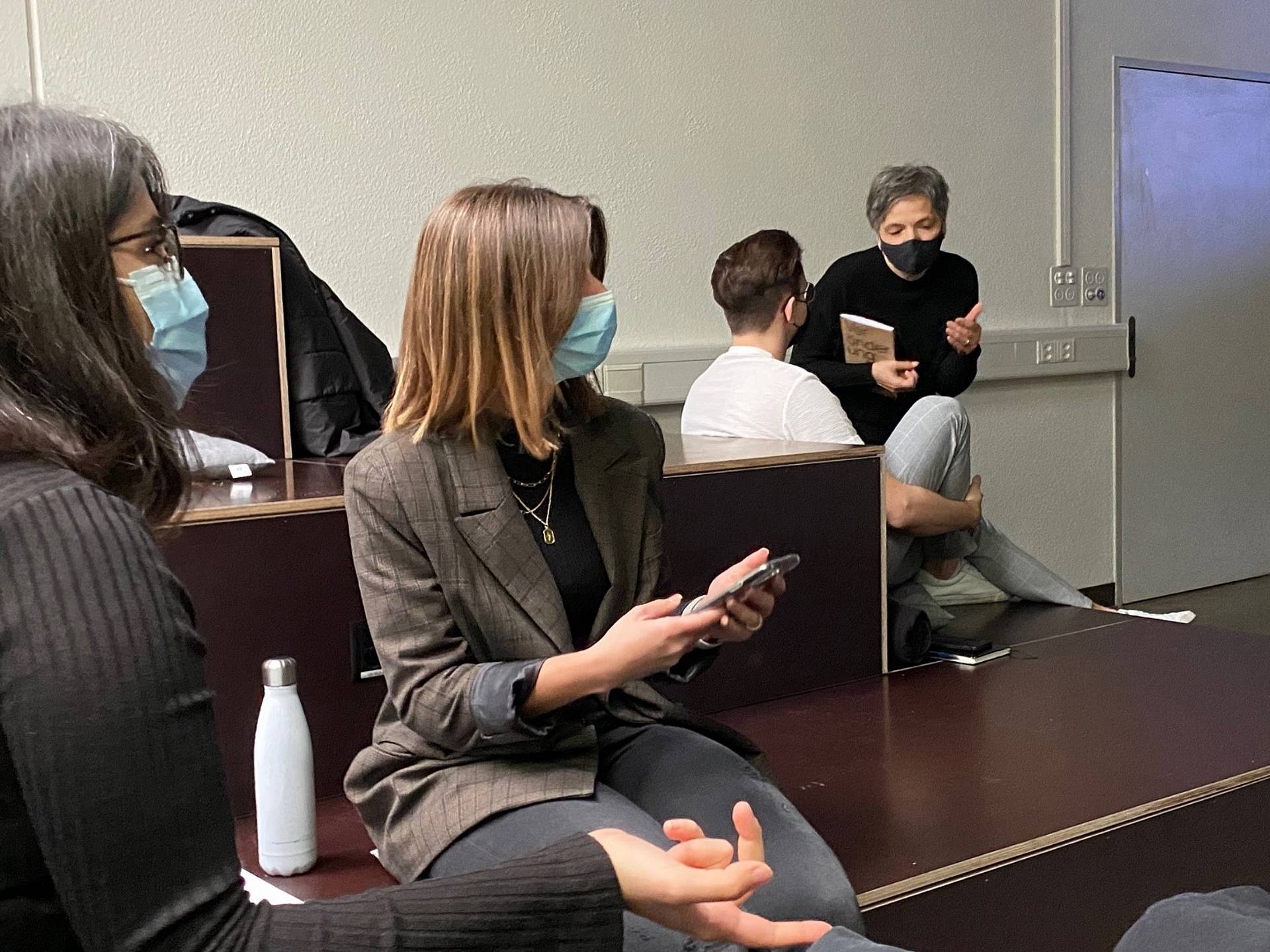 Was wollen sie mit dem Film erreichen? Wer ist ihre Zielgruppe? Ist ihre Idee technisch und zeitlich machbar? Jedes Semester wird ein umfassendes Projekt präsentiert, diesmal bei Dozent Vasilis Kotarelas. Feedback und Benotung werden gemeinsam mit Co-Lehrgangsleitung Rosa Ventre gleich im Anschluss an die Präsentation gegeben.