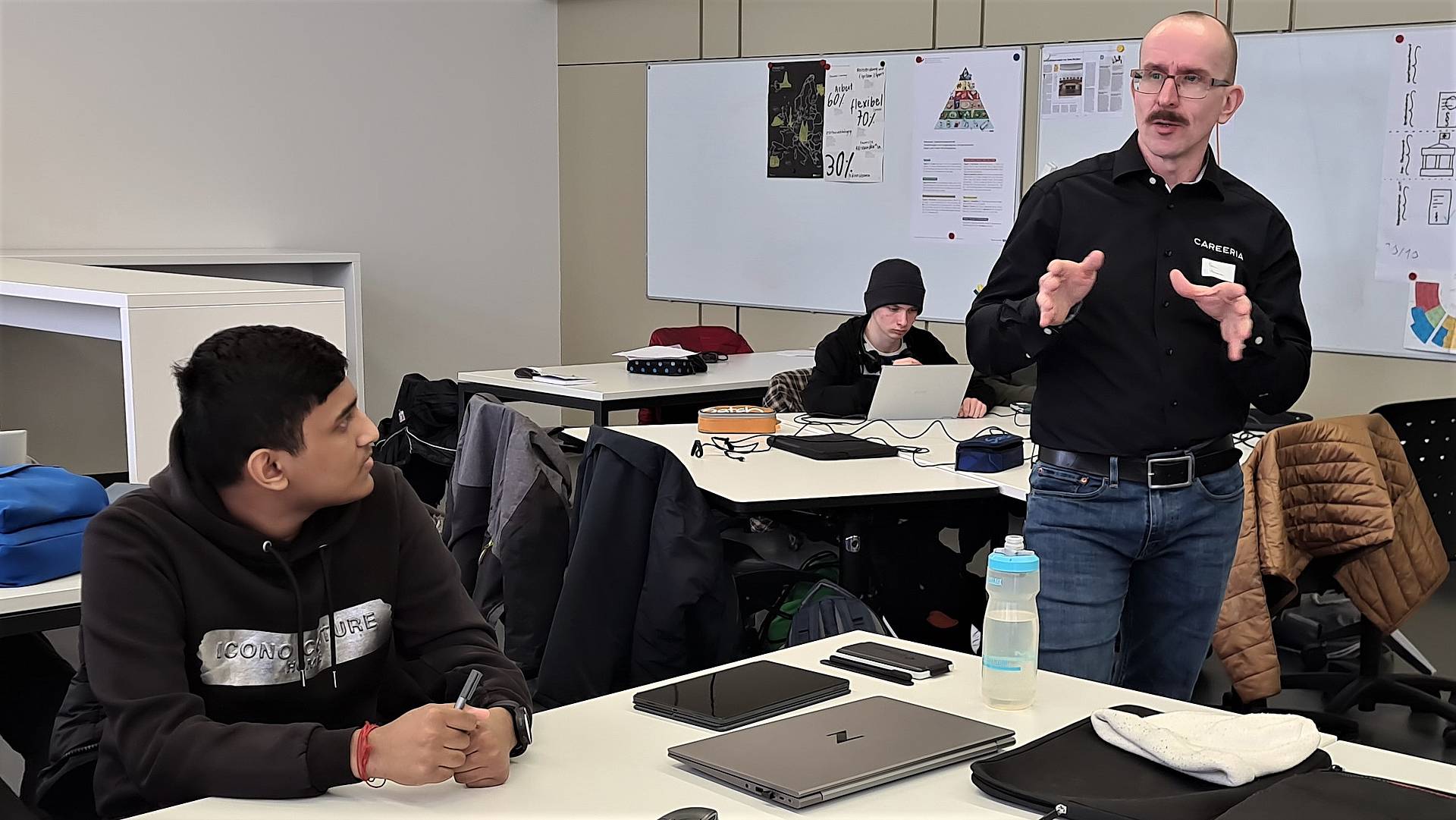 Von den Sprachfertigkeiten zeigte sich auch Pekka Pulkkinen beeindruckt. Der stellvertretende Direktor für den Bereich Technologie und Digitalisierung an der Careeria liess sich und seinen finnischen Lehrpersonen von den Lernenden selbst erklären, wie viele Schnupperlehren sie besuchten und wie viel sie in welchem Lehrjahr verdienen – auf Englisch. «Ihre Offenheit und ihr Selbstvertrauen beeindrucken mich», sagt Pekka Pulkkinen.