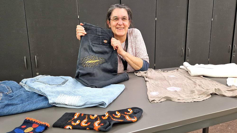 Im Kurs von Katja Frefel lernen Teilnehmende die wichtigsten Methoden des kreativen Reparierens. Mitbringen darf man Kleidung mit Upcycling-Potenzial und Lust am Ausprobieren. «Geduld ist auch erforderlich», sagt Katja Frefel. «Visible Mending ist eine langsame Tätigkeit in einer schnellen Welt. Beim Reparieren mit der Hand entsteht etwas, das keine Maschine ersetzen kann. Oft genügt es, ohne fixe Idee einfach zu beginnen.»