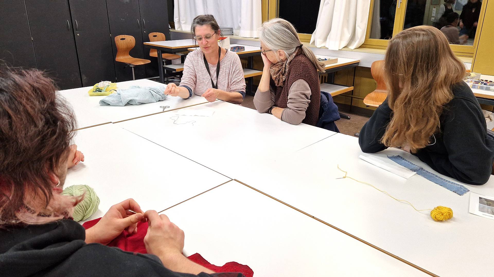 Die verschiedenen Techniken lernen die Teilnehmenden im Tageskurs an der Schule für Gestaltung St.Gallen kennen: Vom dekorativen Schlingstich über den einfachen Vorstich bis hin zum Maschenstich, der einigen noch vom Sockenstopfen bekannt ist. Daneben kommen eine Vielzahl weiterer Stiche und Stich-Kombinationen zum Einsatz, wie zum Beispiel der Webstich, der ein gewebtes Netz über ein Loch legt, sowie der überkreuzende Zickzack-Hexenstich oder der verspielte Kett- beziehungsweise Margeritenstich.