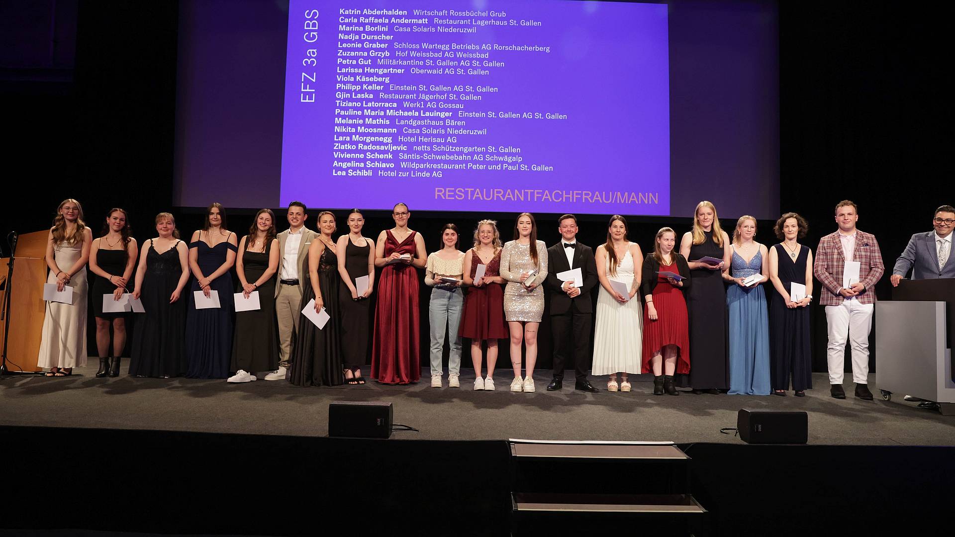 Wenn ein Gast aufmerksam gefragt wird, ob er bezahlen wolle, entgegnen viele: «Eigentlich nicht, wenn es nicht sein muss…» Diesen Satz habe man während der Lehre bestimmt eine Million Mal gehört, bemerkte Restaurantfachfrau Nikita Moosmann. Sie hielt gemeinsam mit Marina Borlini die Laudatio, die jährlich ein Höhepunkt der Gastro-Abschlussfeier in der Olma-Halle 2.1 bildet. Zur Lehrabschlussfeier luden das GBS St.Gallen, die Gastro Stadt St.Gallen, die Interessengemeinschaft Gastro-Lehrlingsfeier IGL, die Ostschweizer Gastronomiefachschule und die Hotel & Gastroformation SG AI AR FL.