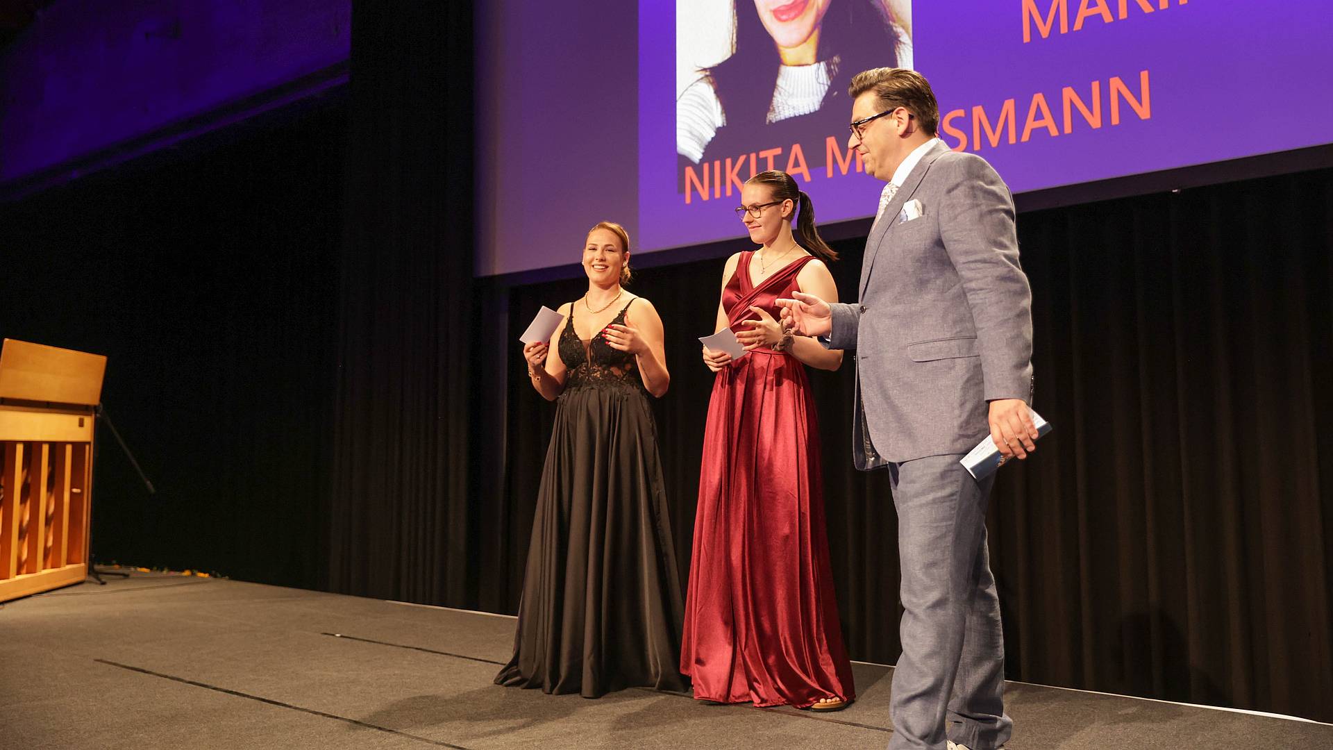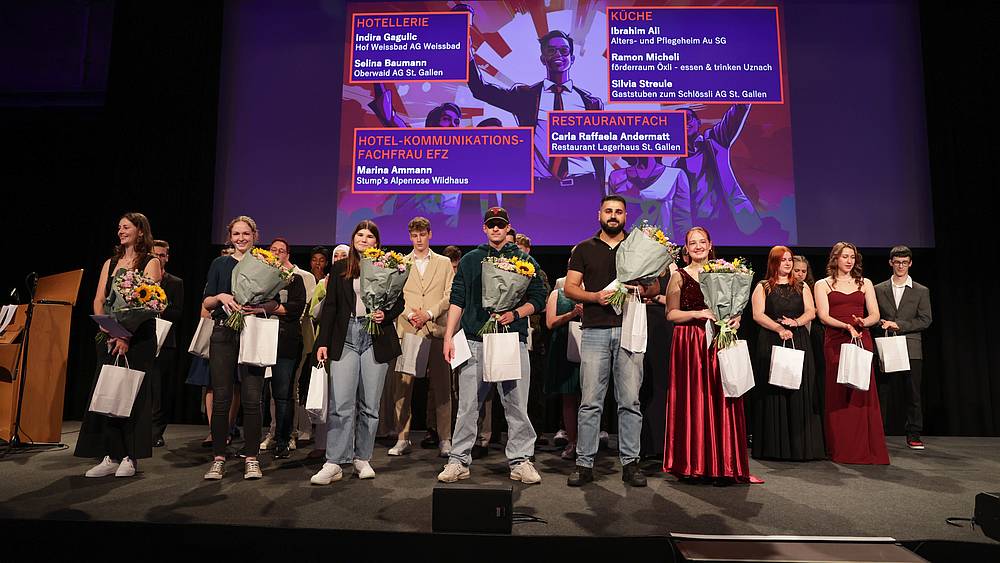Die liebevoll vorgetragenen Anekdoten zeigten den über 850 anwesenden Personen, wie wohl sich Marina Borlini und Nikita Moosmann in der Gastrobranche mittlerweile fühlen. Der Dank der Absolventinnen galt den drei Säulen des Schweizer Berufsbildungssystems: Ausbildungsbetrieb, Berufsfachschule und Überbetriebliche Kurse. Die verschiedenen Wegbegleiter/-innen hätten dafür gesorgt, dass die Lernenden «immer Vollgas geben».
