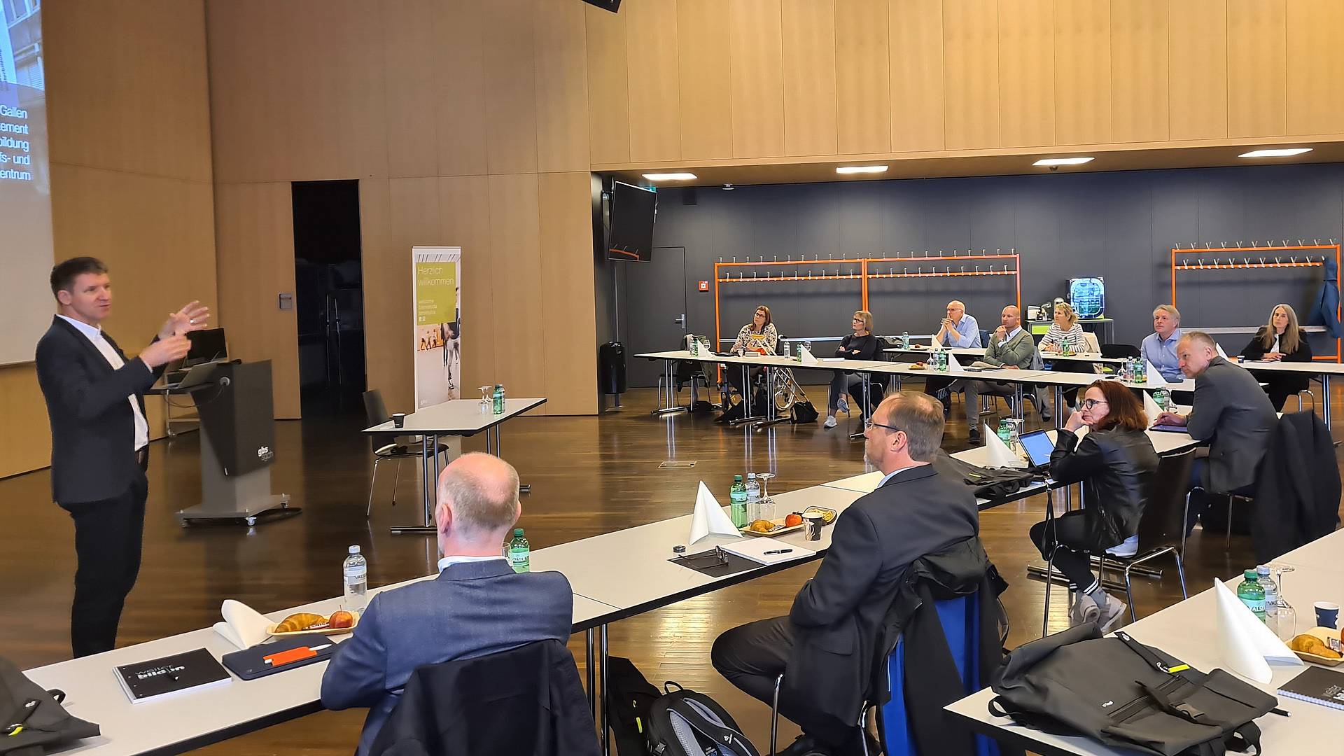 Die Direktoren der Berufsbildenden Schulen Hamburg besuchten den GBS-Standort im Riethüsli im Rahmen ihrer Bildungsreise. Während dem Aufenthalt in der Ostschweiz informierten sie sich am KBZ St.Gallen über die Reform der kaufmännischen Grundbildung und erhielten an der BZR Rorschach-Rheintal einen Einblick in die Digitalisierung der Berufsbildung. Zum Abschluss der Woche kehrten sie noch einmal ans GBS St.Gallen zurück. Diesmal informierten sie sich im Klosterviertel über die Brückenangebote, insbesondere über die Integrationsklassen.