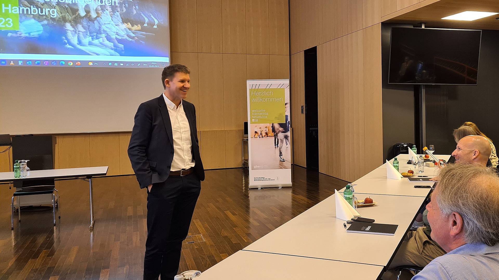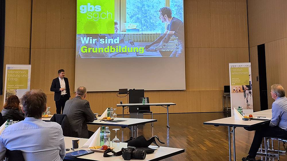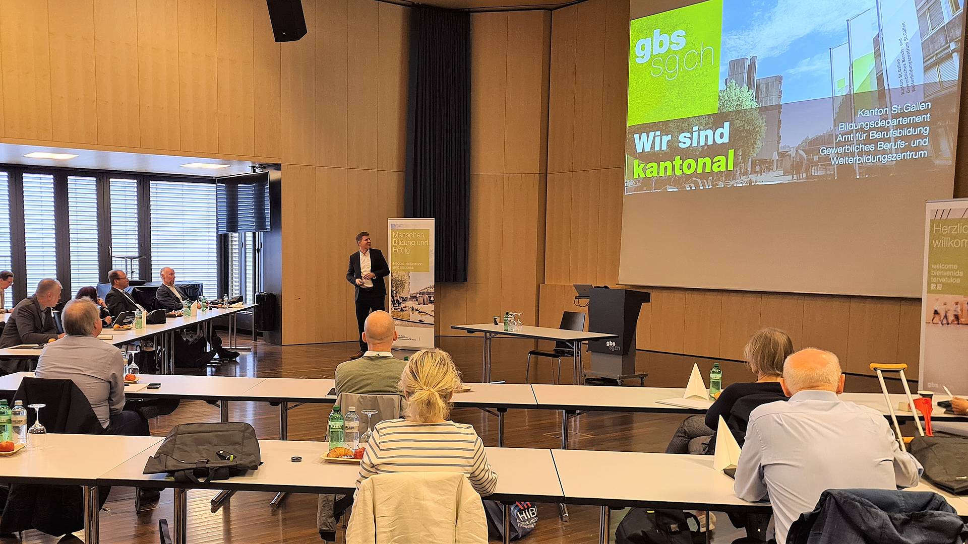 Wenn Rektor Daniel Kehl Gäste empfängt, dann wird wieder einmal offensichtlich, wie viel am GBS St.Gallen läuft. In der Aula nahmen die Direktoren der Berufsbildenden Schulen aus Hamburg Platz und wurden über die verschiedensten Projekte informiert. Über allem stehe, dass das GBS St.Gallen ein Raum für Begegnung sei, so Daniel Kehl.