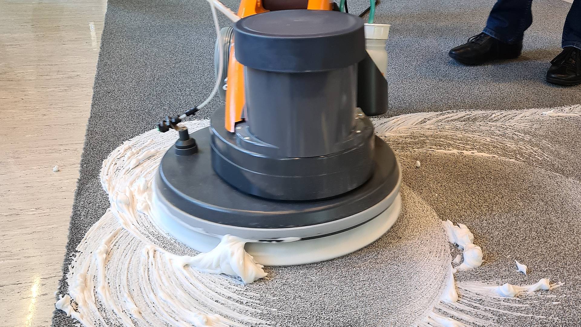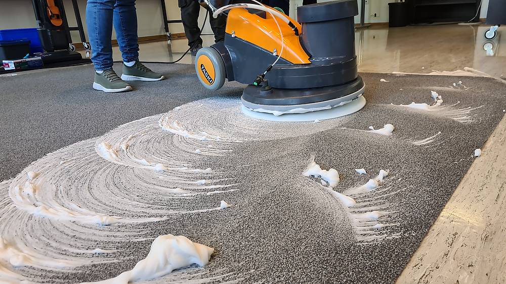 Viktor zum Beispiel hat textile Beläge bis anhin mit dem Hochdruckreiniger behandelt. Sprühextrahieren musste er in seiner Funktion als Hauswart der Schule Berg SG noch nie. «Dieser Einblick ist super. Im Hinblick auf die Prüfung ist unser Besuch bei Diversey sehr wichtig», sagt der Student. Was ihm gefällt, ist die Vorgehensweise der Experten/-innen von Diversey. Zuerst gibt es eine Einführung, anschliessend ist das Geschick der Studierenden gefragt. «An der Prüfung wird es nicht anders sein wie hier: Der Experte lässt dich machen und du musst selber überlegen», so Viktor.