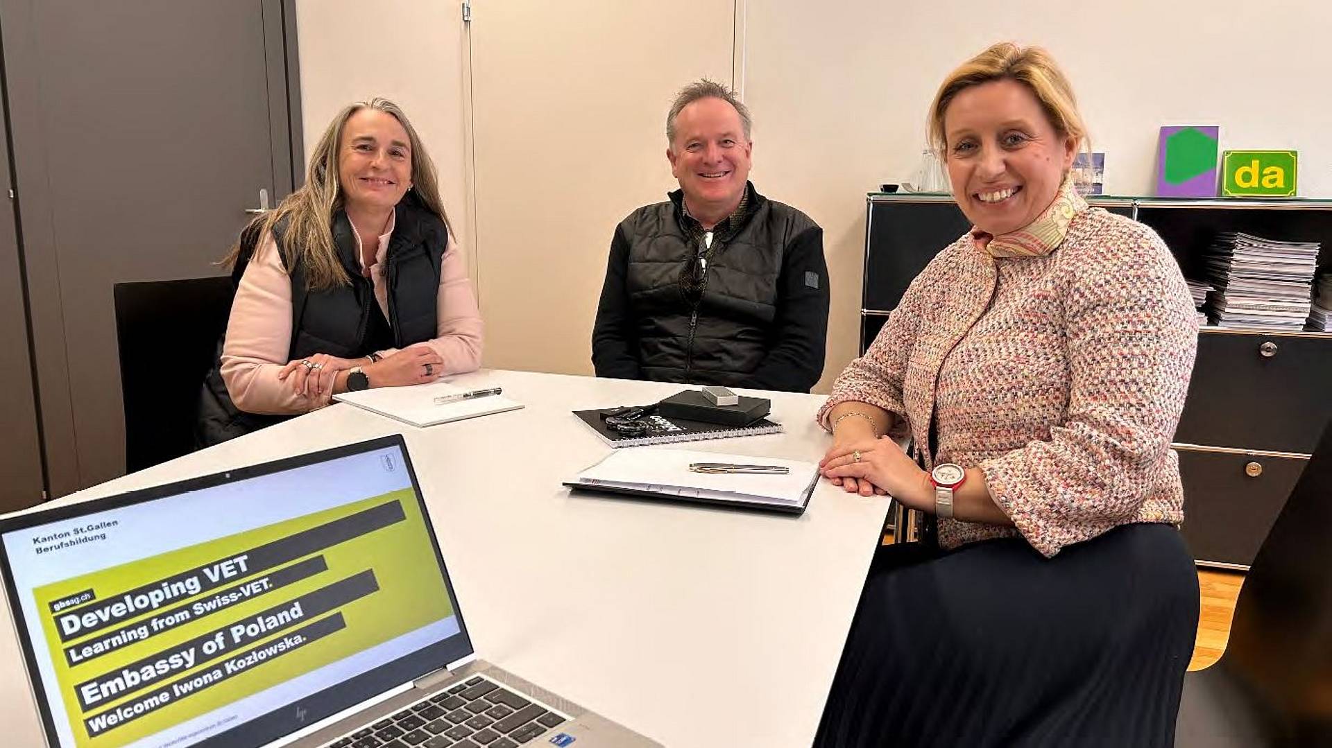 Austausch und Mobilität im Rahmen des GBS-Mobility-Programms Move On bieten dafür hervorragende Möglichkeiten. Das Programm schafft die Basis für langfristig angelegte Projekte zur Etablierung von Berufskompetenzen, zum Beispiel in den Bereich Bau, Technik, Dienstleistung, Gestaltung, Brückenangeboten und Berufsmaturität am GBS St.Gallen, und wirken als Türöffner für weitere interessierte Schweizer Berufsbildungsanbieter. Diese bereits bestehenden Möglichkeiten wurden von der polnischen Botschafterin dankend aufgenommen und sehr begrüsst.