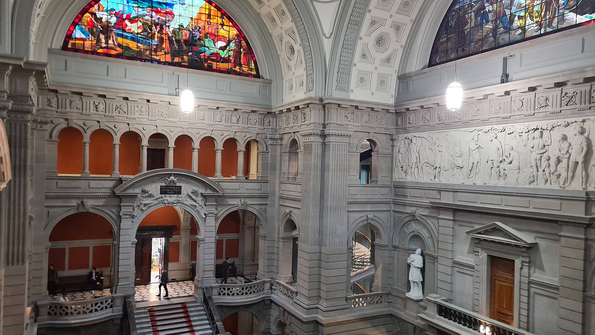 Eine Stunde lang durften die Informatiker/-innen EFZ Plattformentwicklung im Nationalrat zuhören und zuschauen. Stets prominent in ihrem Blickfeld befand sich das Landschaftsbild von Charles Giron: «Die Wiege der Eidgenossenschaft». Vor dem monumentalen Ölgemälde führte Nationalratspräsident Eric Nussbaumer (SP/Basel-Land) durch die Traktanden. Insgesamt wurden während des Besuchs der GBS-Klasse zehn Motionen oder Postulate behandelt. Die angehende Informatikerin Seline fand es unterhaltsam: «Ich wäre gerne länger geblieben. Ich interessiere mich politisch und fand es spannend, wie die Politiker/-innen ihre Vorstösse präsentierten.»