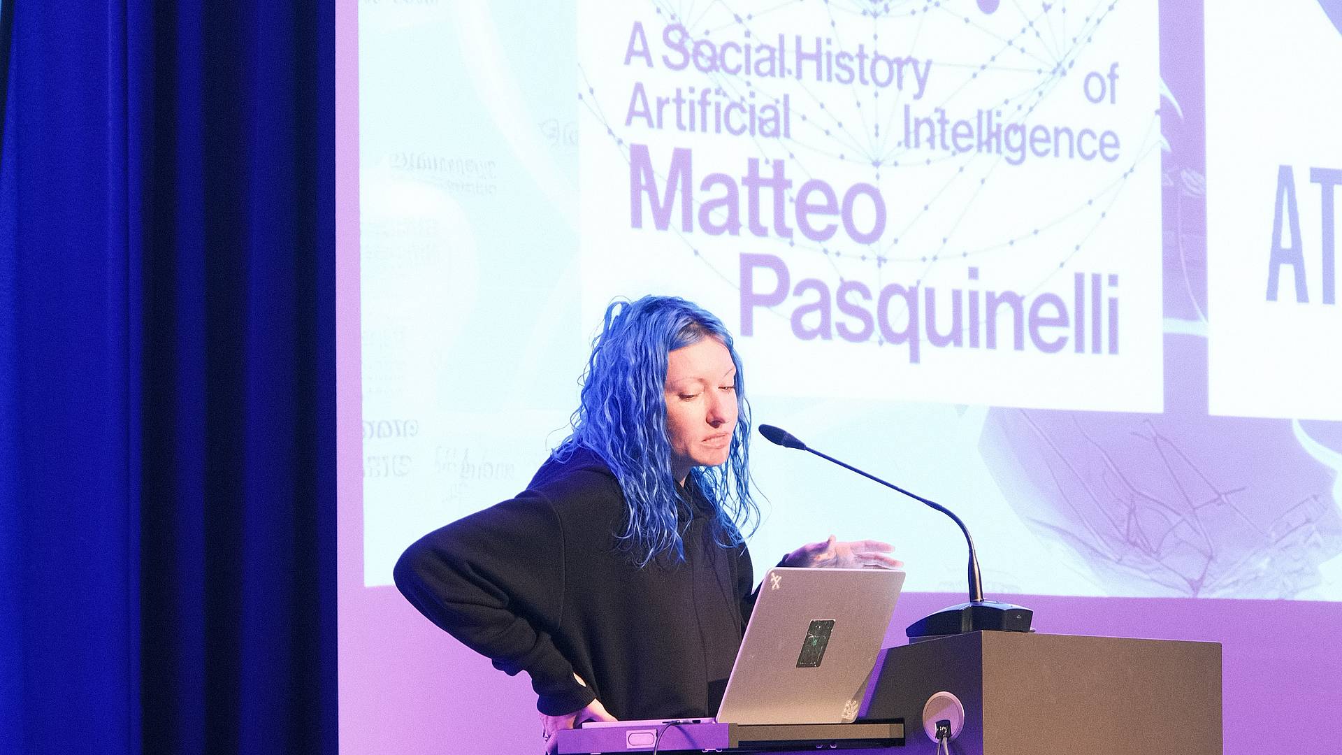 Über den Fachkongress sagt er: «Aus jedem Vortrag heute kann ich einen Input mitnehmen. Besonders spannend finde ich, dass nicht nur KI im Mittelpunkt steht.» Wie viele seiner Klassenkameraden lobt er die Workshops am Vortag, die mit den Referenten/-innen des Interactive Media Design Days stattfanden. Besonders Anklang fand der Workshop der New-Media-Künstlerin Helena Nikonole. Sie stellte verschiedene KI-Tools vor, darunter Large Language Models (LLM).