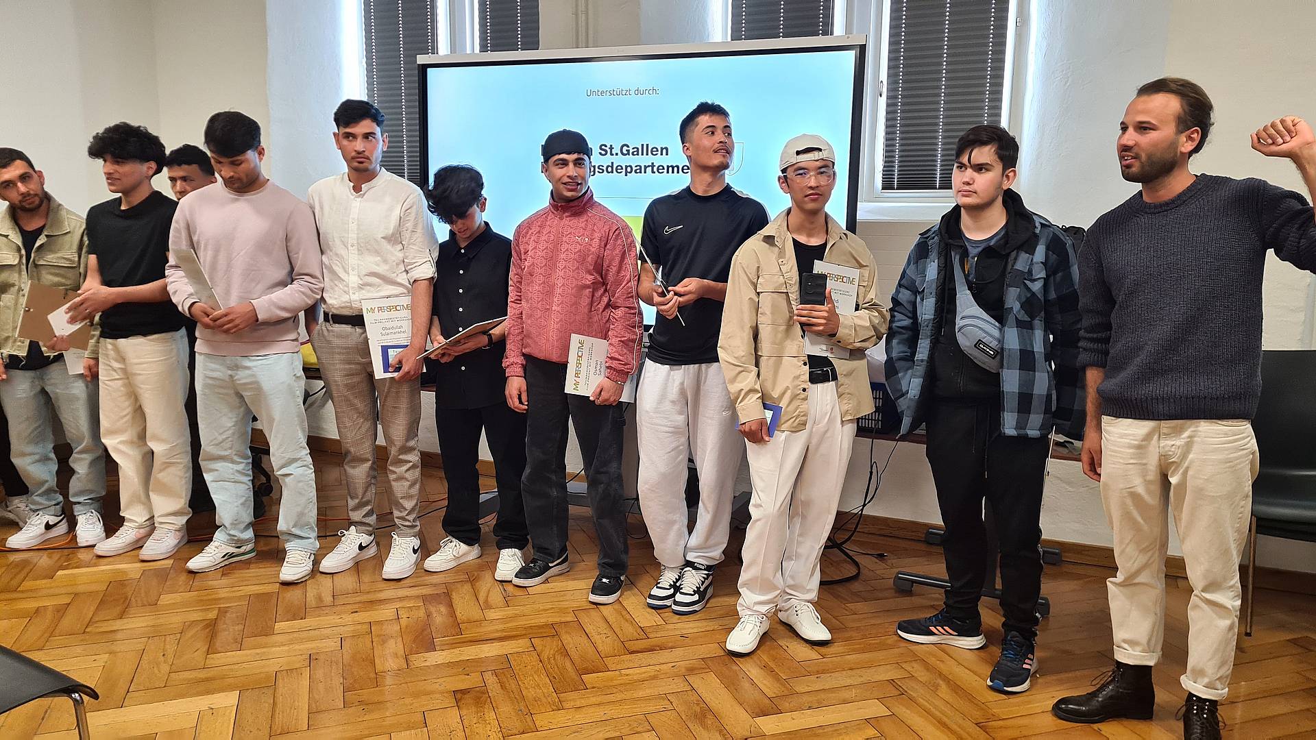 Den Geschäftsführer des Restaurants Radio Mumbai in St.Gallen haben Obaidullah, Abdul Razeq, Jalaluddin, und Nasibullah getroffen. Mohammad Hosseini durchlief selber den Integrationskurs am GBS St.Gallen.