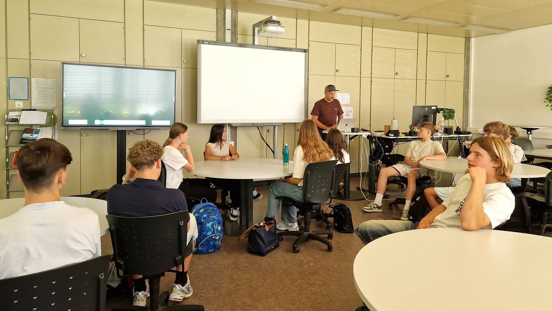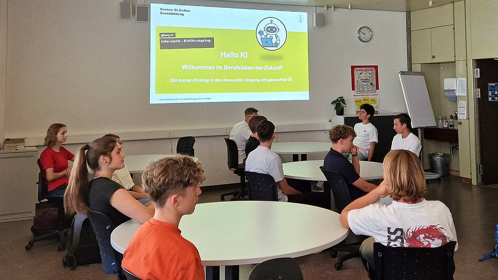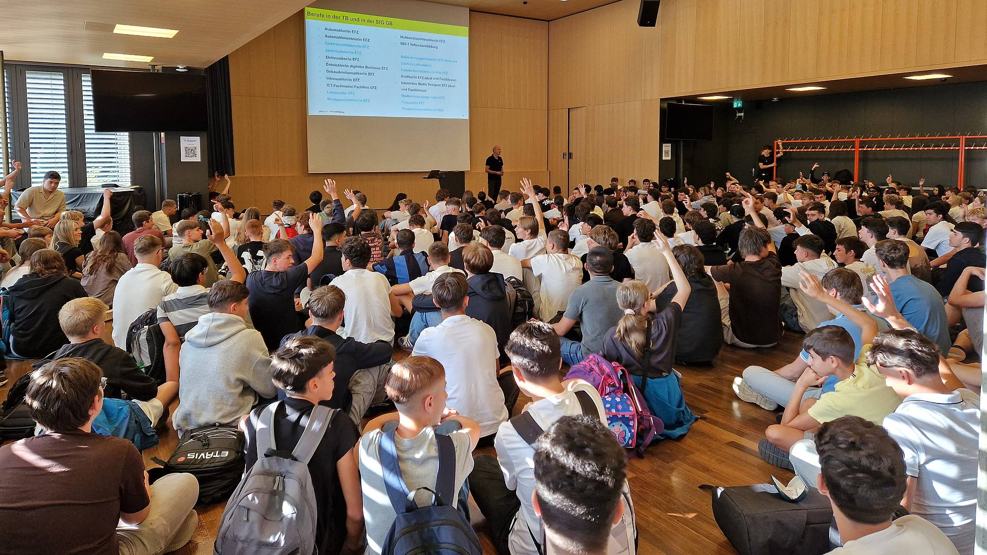 1200 neue Lernende starten nach den Sommerferien am GBS St.Gallen ins Berufs(schul)leben. Am Einführungstag am Hauptstandort im Riethüsli wurden erstmals Teilnehmende der neuen Fachklasse Interactive Media Design begrüsst. Im Fachbereich Informatik wurden derweil die Chancen und Risiken von generativer KI besprochen.