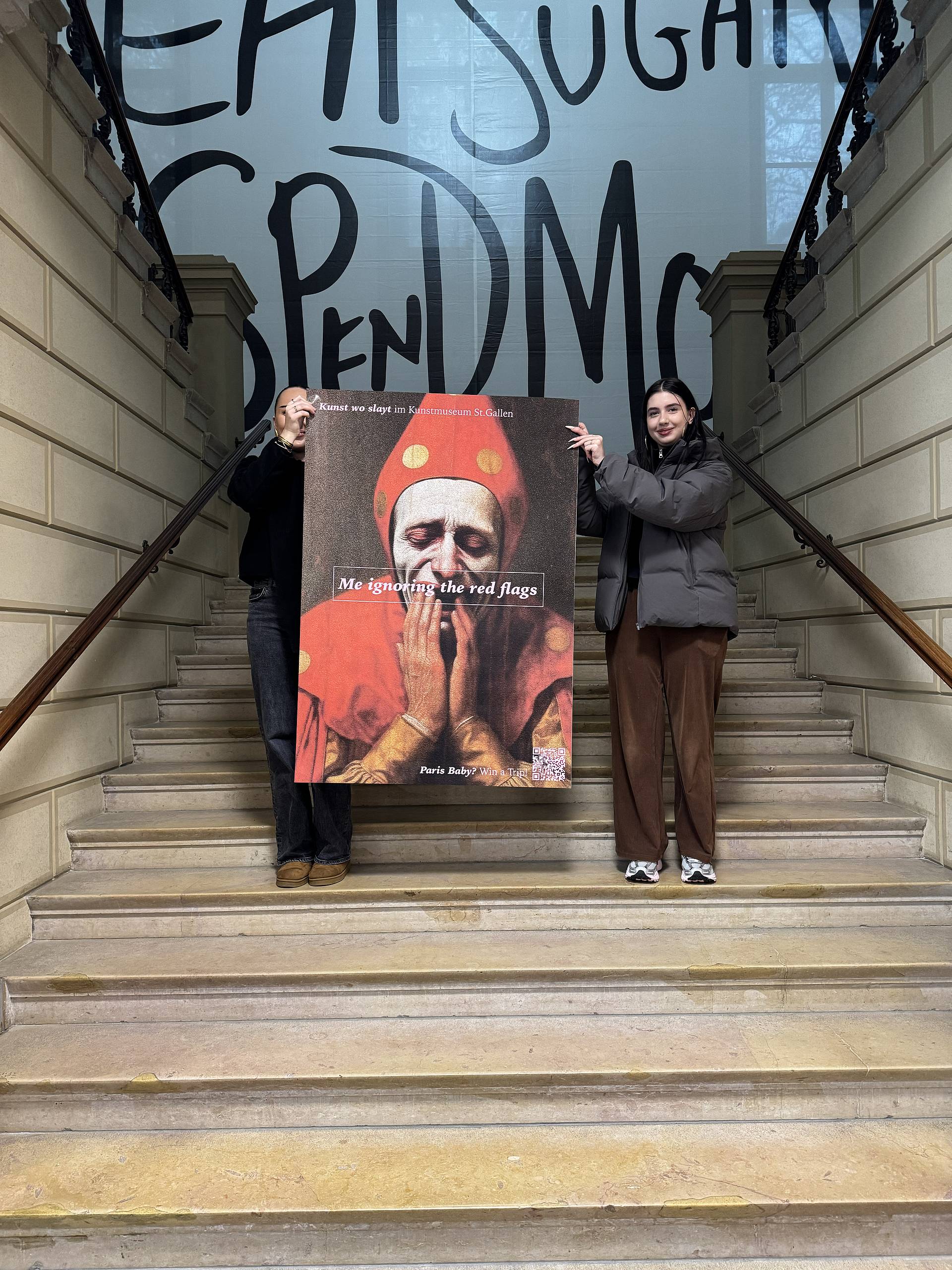 Dass Kunst auch Spass machen kann, wollen beispielsweise Serafina Räber und Ella Handschuh mit ihren Plakaten und der Kampagne «Kunst, wo slayt» vermitteln. Ölgemälde alter Meister werden mit bekannten Meme-Sprüchen kombiniert, die den Kunstwerken zu ungeahntem Unterhaltungswert verhelfen.