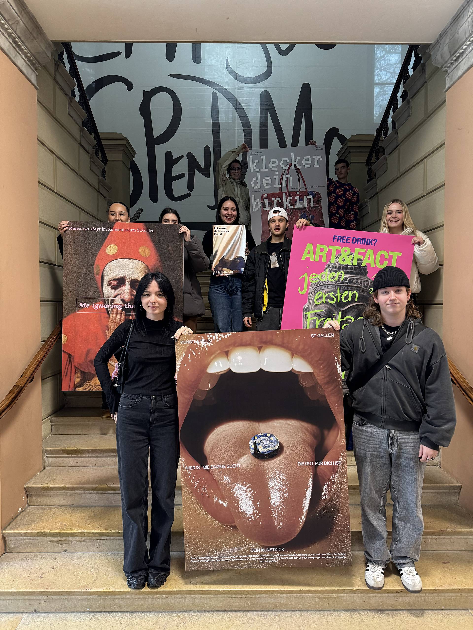 Im Modul «Activation Design» der Lehrpersonen Marco Casile und Alexander Kranz-Mars konzipierten und gestalteten die Lernenden des dritten Jahres der Fachklasse Grafik in St.Gallen Kampagnen. Das Kunstmuseum St.Gallen bot sich als interessierter Sparringpartner an, um das fiktive Projekt mit Inputs aus erster Hand zu begleiten.